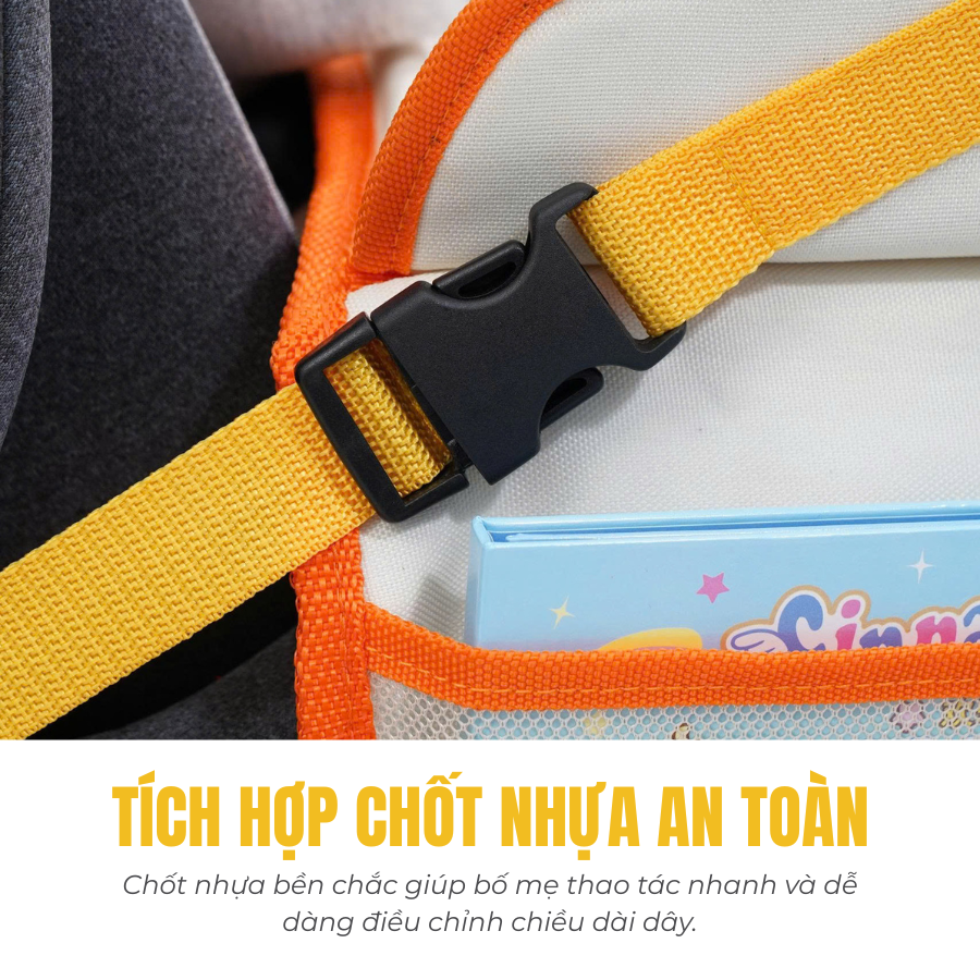 - Dây đeo vai điều chỉnh linh hoạt, khóa nhựa bền chắc, đảm bảo khay cố định khi bé sử dụng.