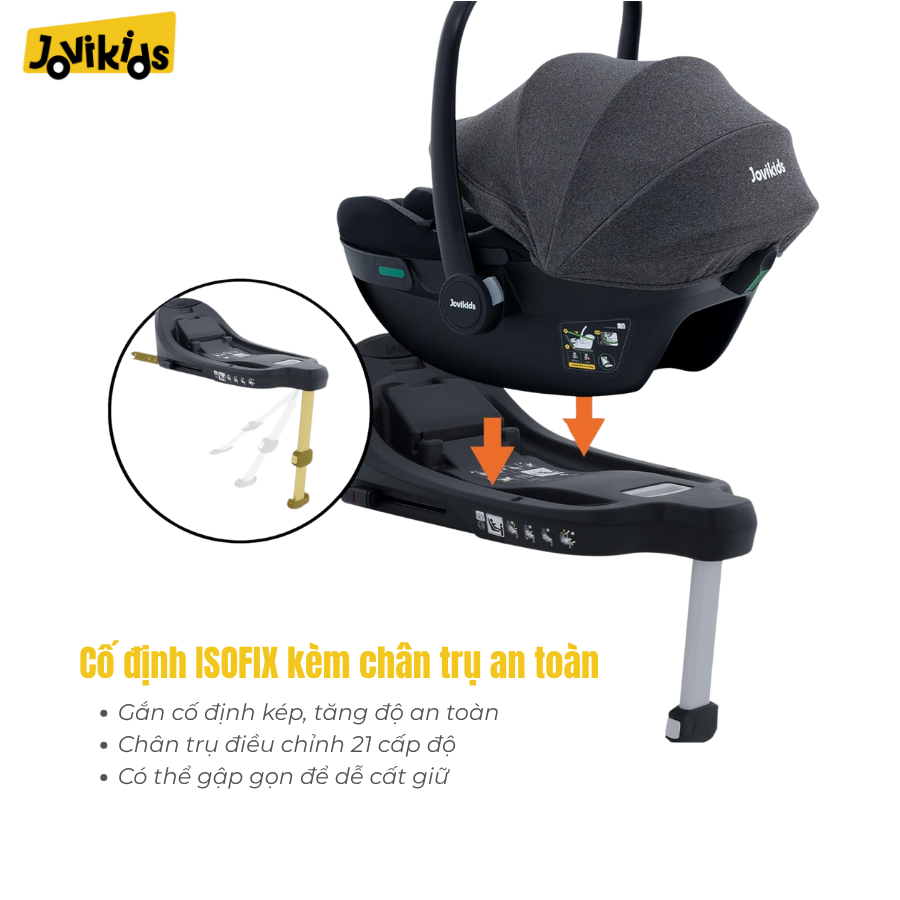 Nôi sơ sinh Jovikids R129 i-Size phiên bản có base Isofix mang đến độ an toàn vượt trội và sự tiện lợi tối đa khi lắp đặt. Phù hợp cho bé 0 đến 18 tháng, sản phẩm giúp bố mẹ cố định nôi chỉ trong vài giây, hạn chế sai lắp đặt và tăng độ ổn định khi xe di chuyển.