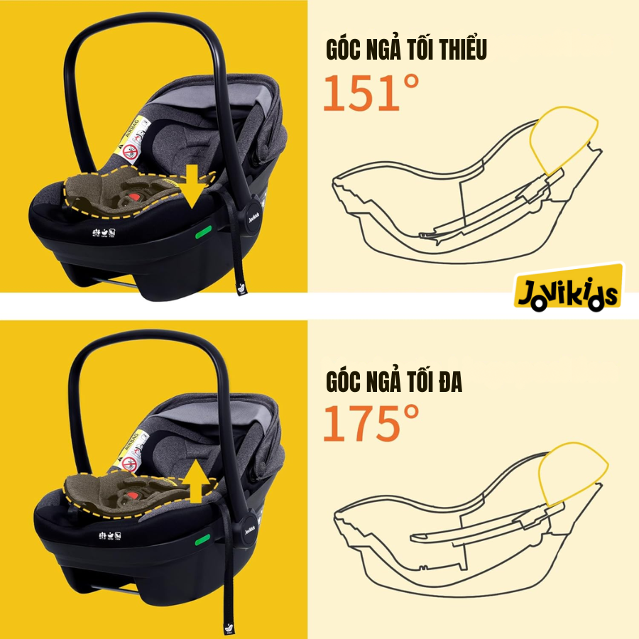 - Ghế ngả gần phẳng cho bé ngủ sâu và dễ thở.