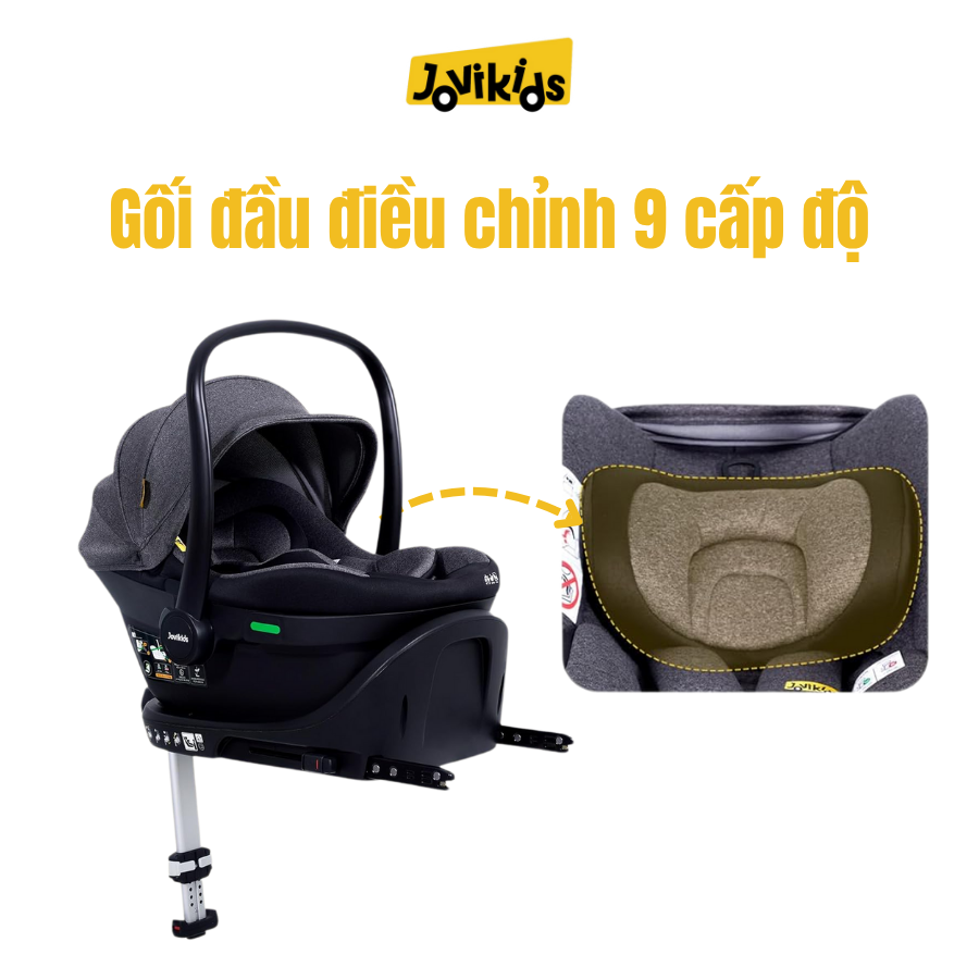 - Tựa đầu 9 mức hỗ trợ cột sống và đầu cổ đúng chuẩn i-Size.