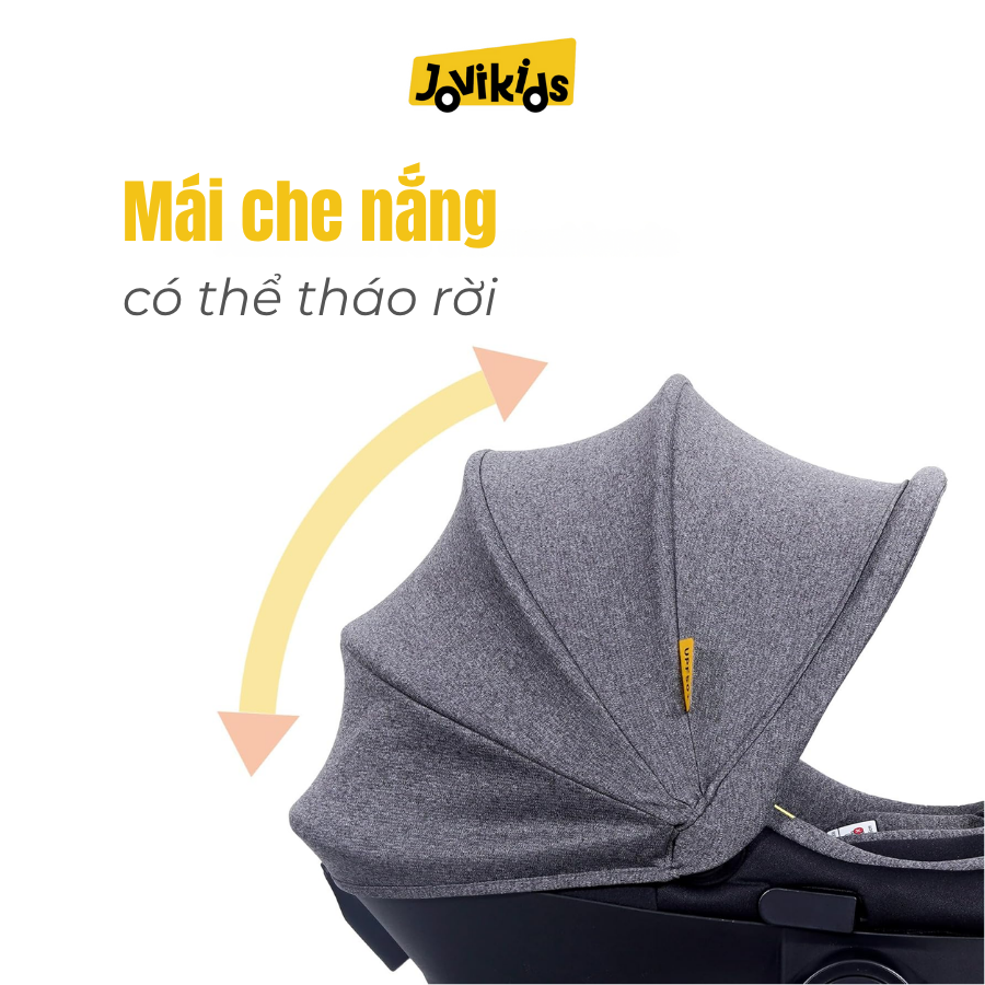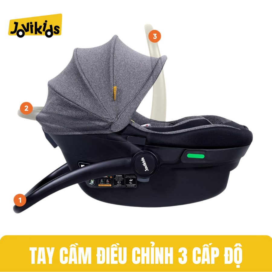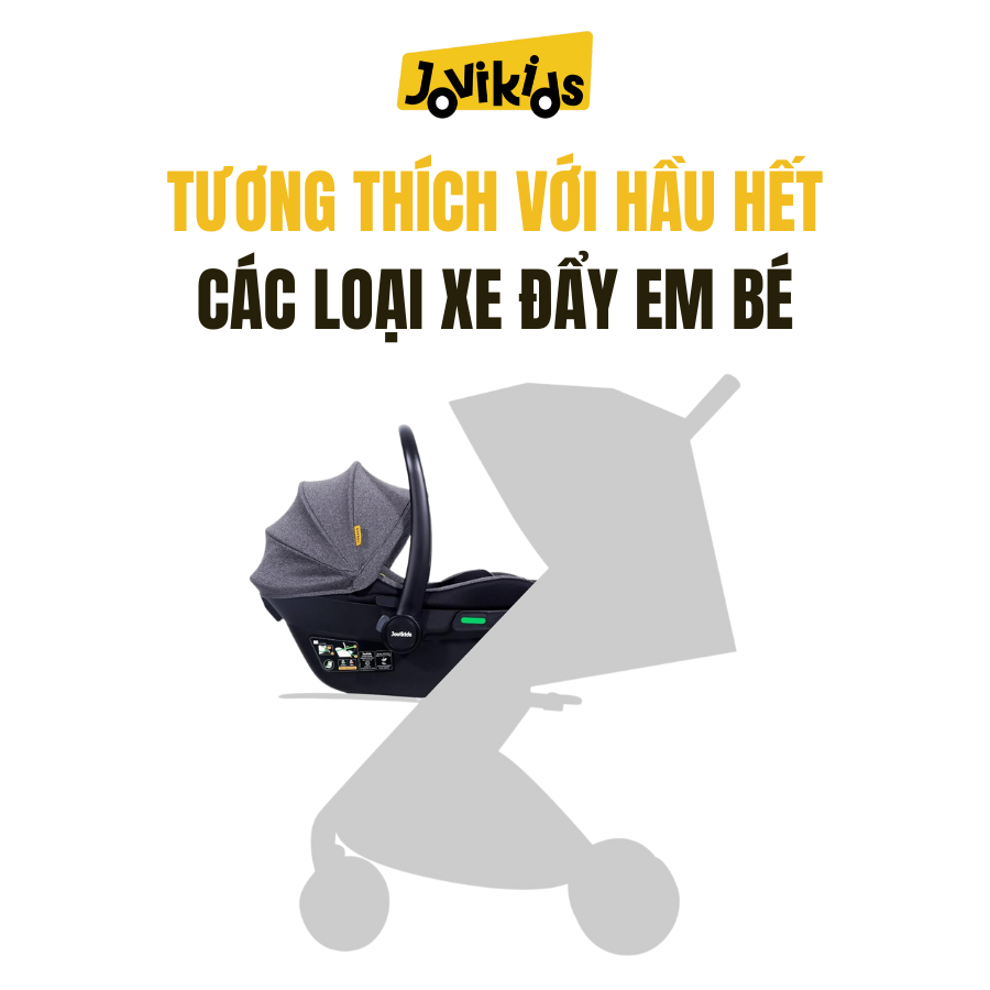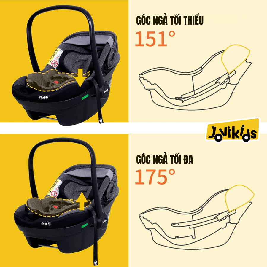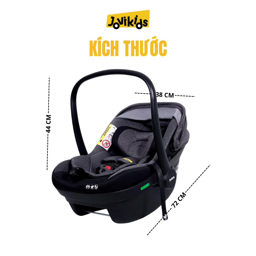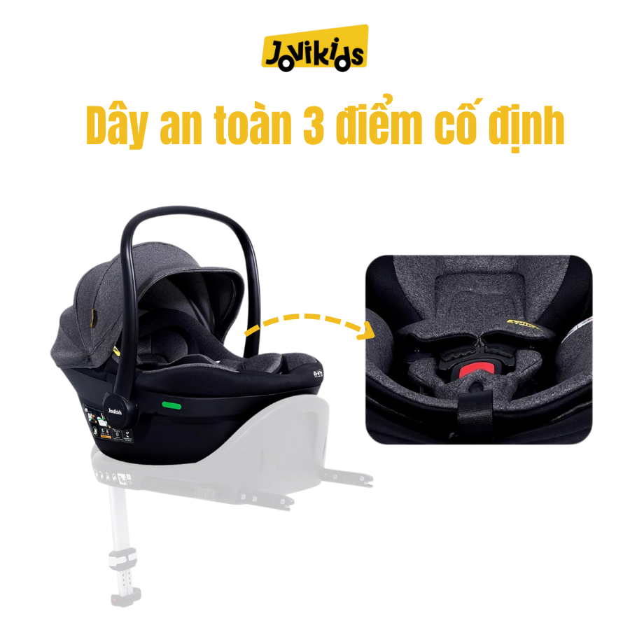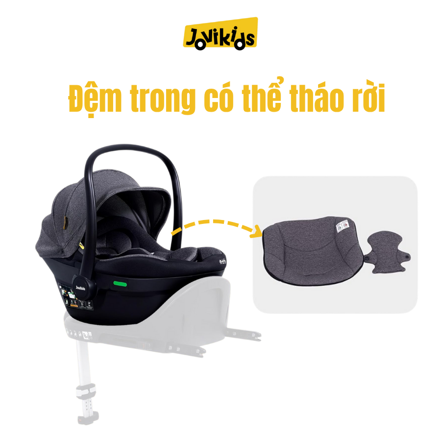 Nôi sơ sinh Jovikids phiên bản không base được thiết kế dành cho bé từ 0 đến 18 tháng, trọng lượng siêu nhẹ chỉ 4kg, dễ mang – dễ lắp – phù hợp mọi dòng xe sử dụng dây an toàn. Đây là lựa chọn linh hoạt cho gia đình thường xuyên đổi xe hoặc muốn một chiếc nôi nhỏ gọn, tiện lợi và an toàn cho bé.