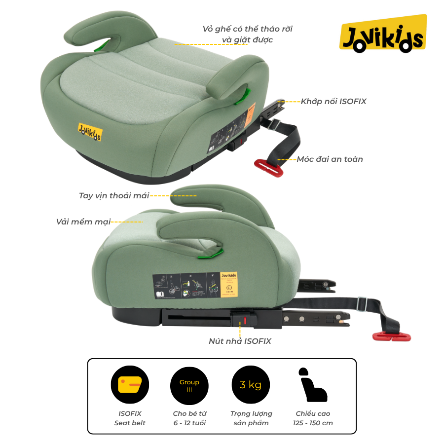 Jovikids OHHO (Green) – Ghế ô tô trẻ em R129 cho bé từ 6 tuổi đến 12 tuổi