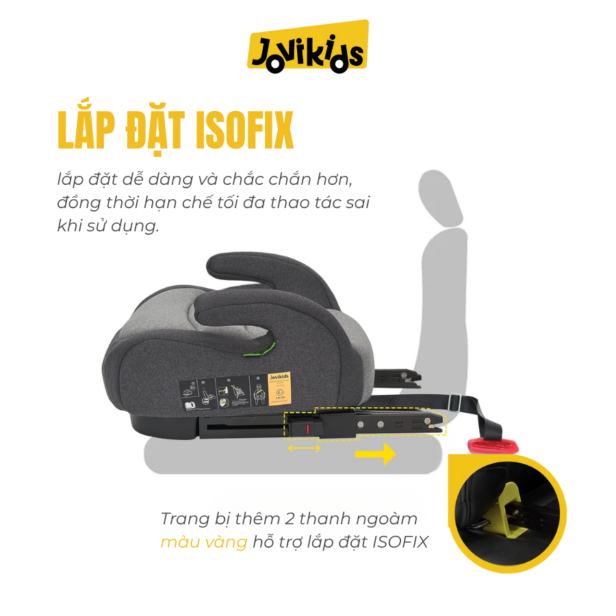 - Lắp đặt Isofix, giúp ghế cố định chắc chắn, tăng độ an toàn khi phanh hoặc chuyển hướng.