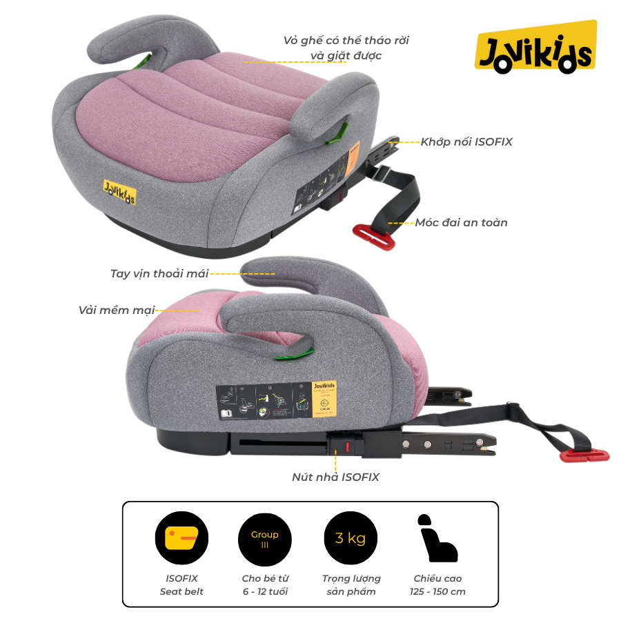 Jovikids OHHO là dòng ghế nâng di động (Booster Seat) dành cho trẻ từ 6 – 12 tuổi, hỗ trợ chiều cao từ 125 – 150cm.