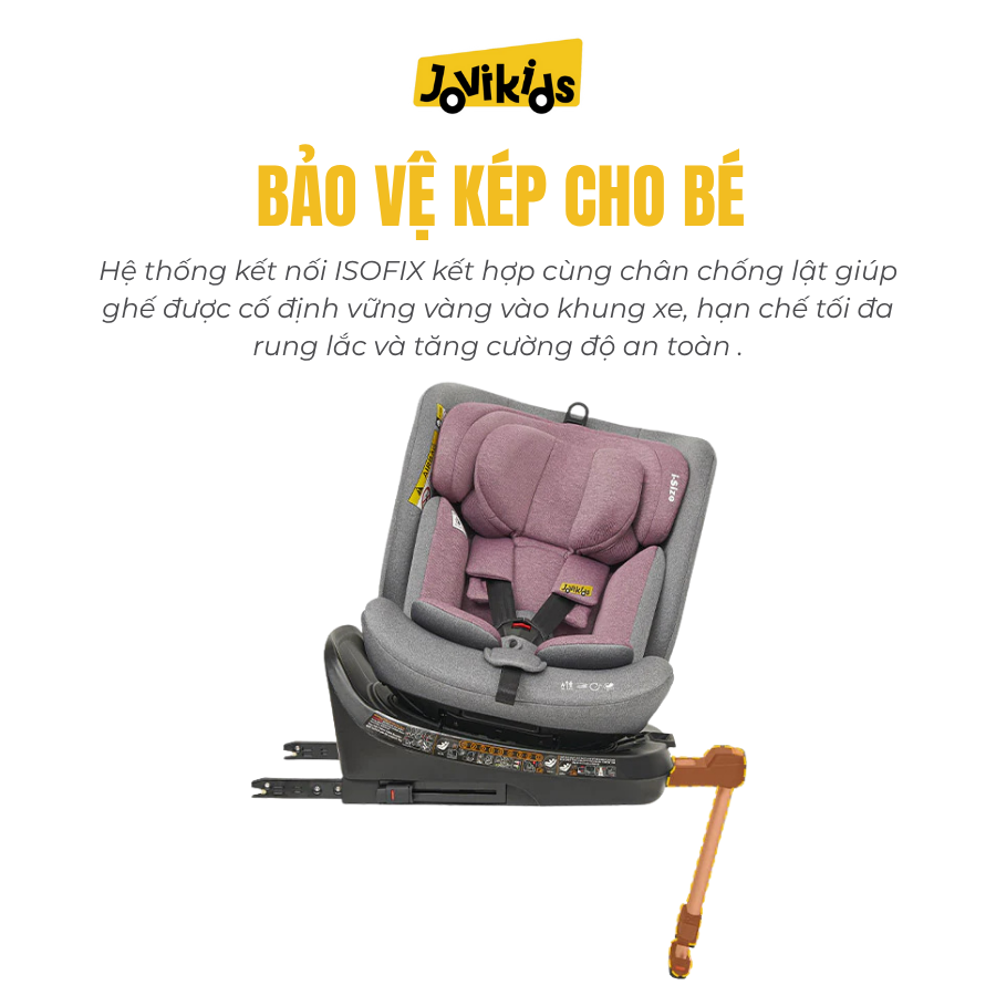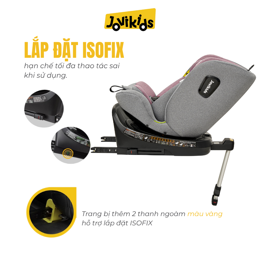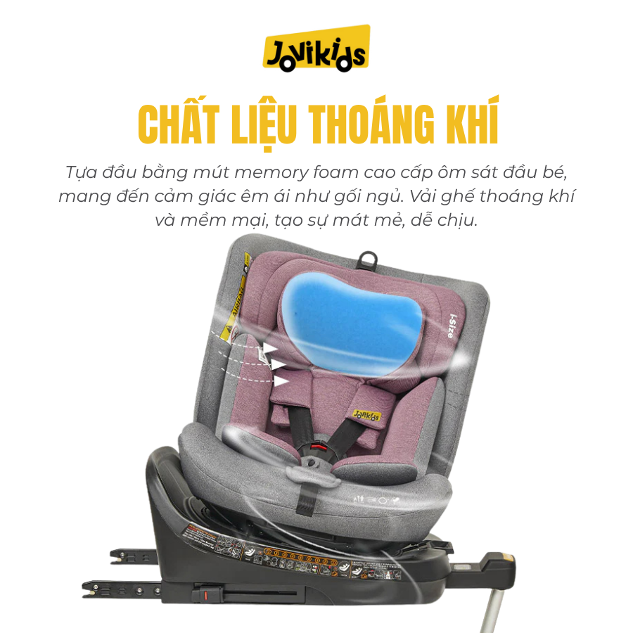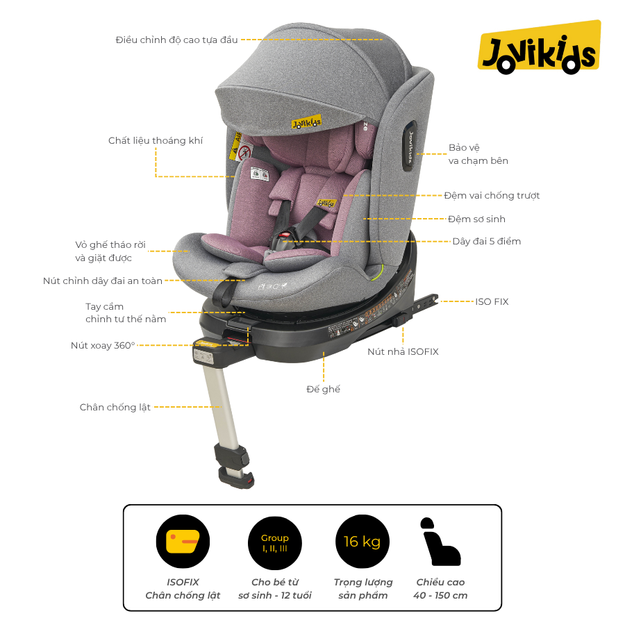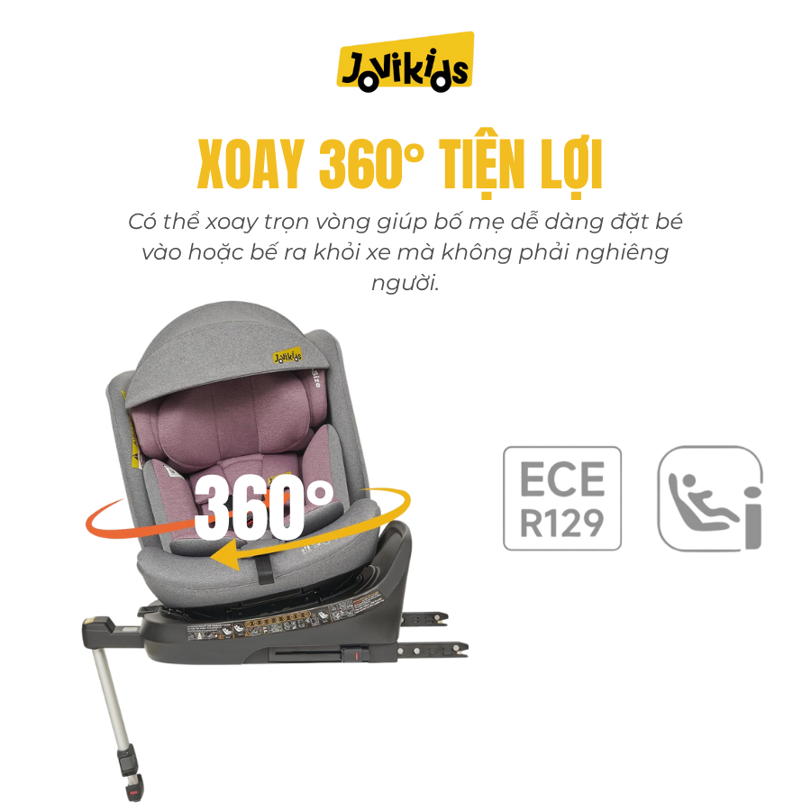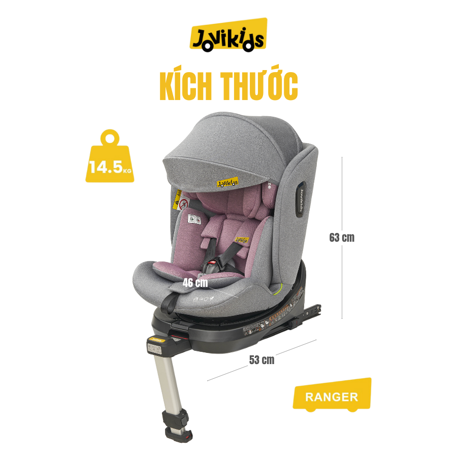 Jovikids Ranger 360° là mẫu ghế ô tô xoay linh hoạt dành cho bé từ sơ sinh đến 12 tuổi, đáp ứng tiêu chuẩn an toàn châu Âu R129/i-Size. Ghế hỗ trợ xoay 360° tiện lợi, ngả sâu cho bé sơ sinh và sử dụng bền bỉ suốt nhiều năm, phù hợp cho bố mẹ muốn một chiếc ghế vừa an toàn, vừa tiết kiệm chi phí.
