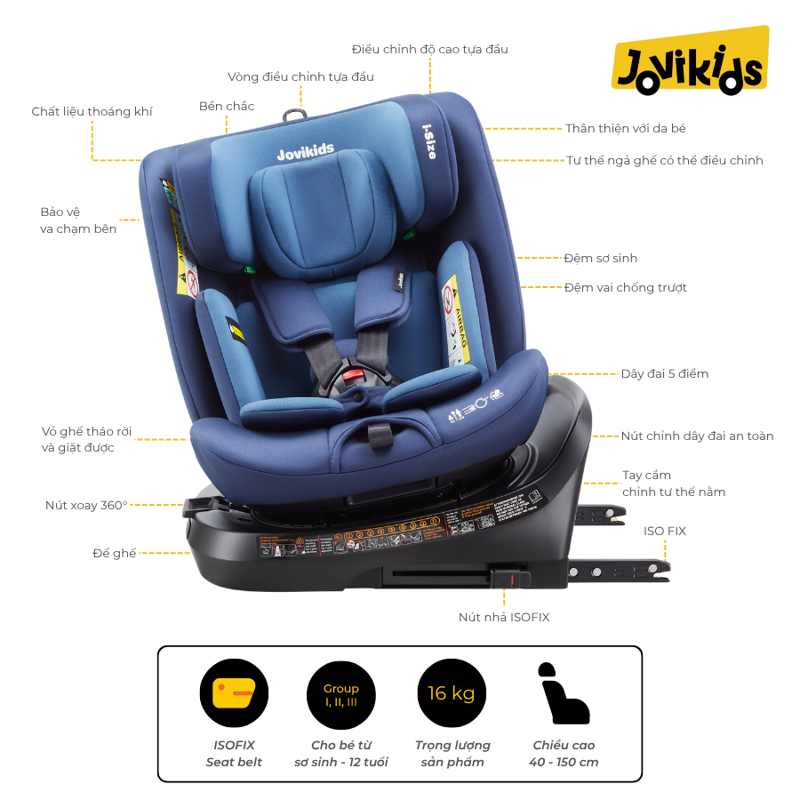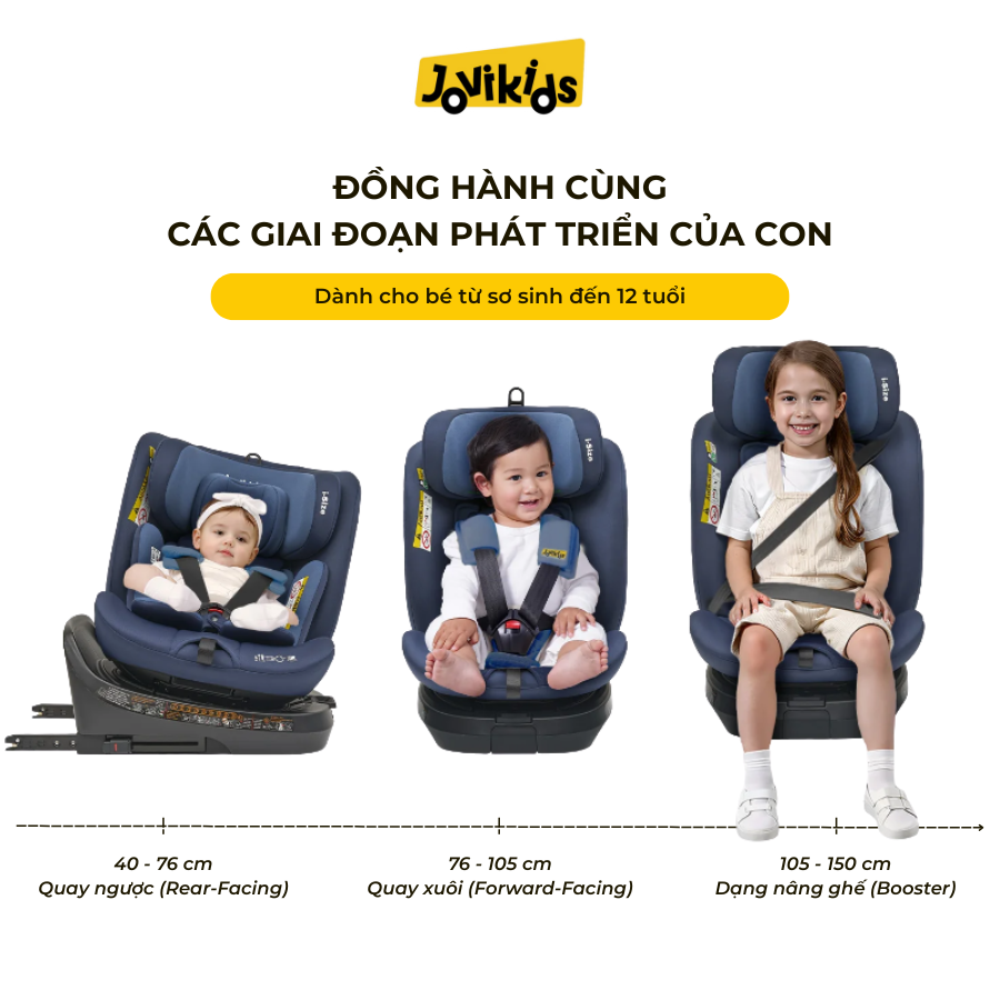 Jovikids Ranger TT (Blue) – Ghế ô tô trẻ em R129 cho bé sơ sinh – 12 tuổi