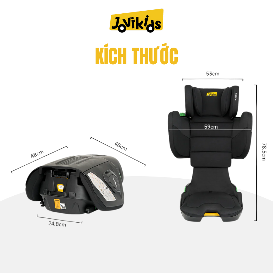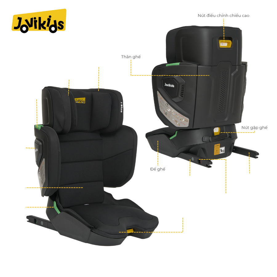 Jovikids Rober (Black) – Ghế ô tô trẻ em R129 cho bé từ 3 tuổi đến 12 tuổi