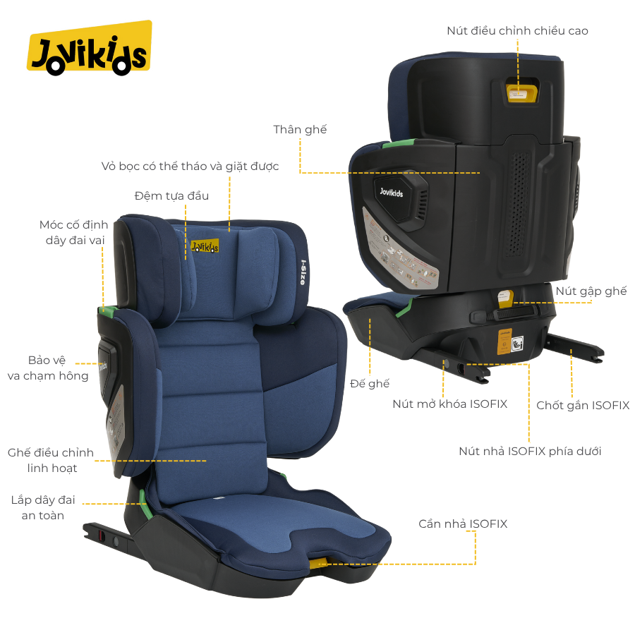 Jovikids Rober (Blue) – Ghế ô tô trẻ em R129 cho bé từ 3 tuổi đến 12 tuổi