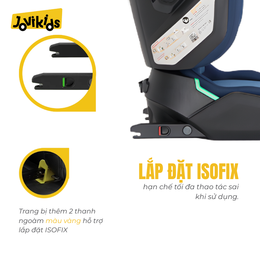 - Lắp đặt Isofix, giúp cố định ghế chắc chắn, an toàn hơn khi xe di chuyển.
