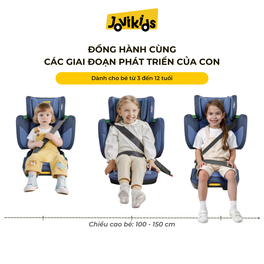 Jovikids Rober là mẫu ghế nâng lưng cao dành cho trẻ từ 3 – 12 tuổi, hỗ trợ chiều cao từ 100 – 150cm, phù hợp cho trẻ đã qua giai đoạn sử dụng ghế i-Size cho bé nhỏ.