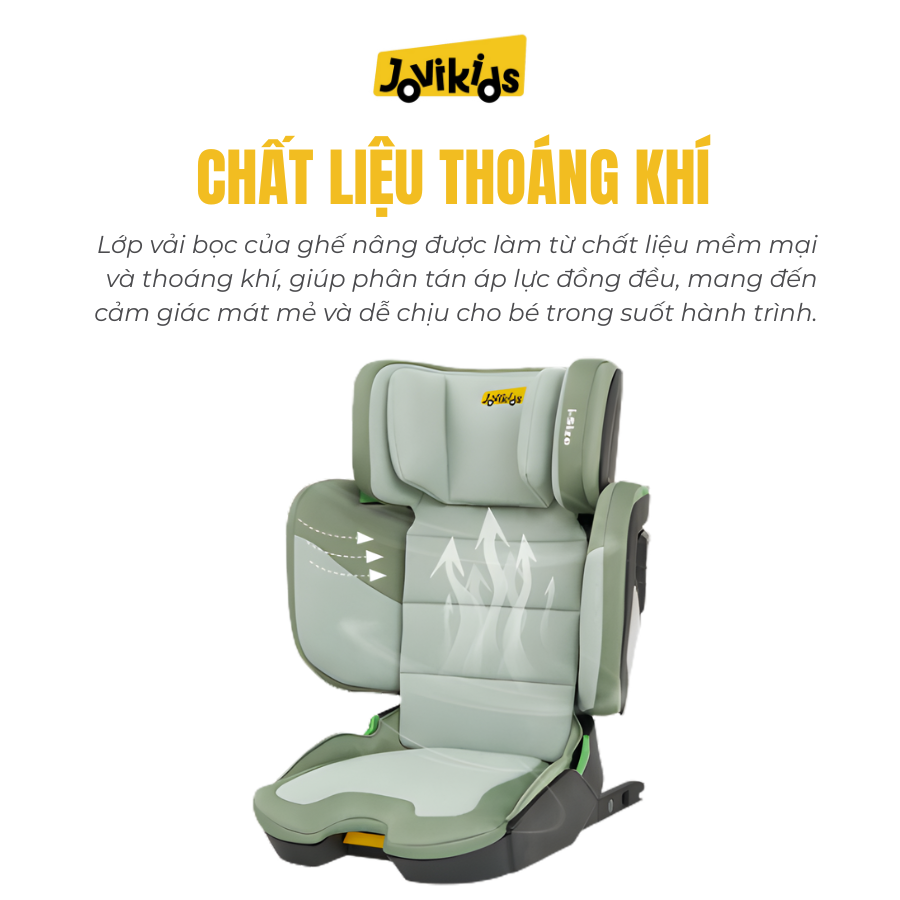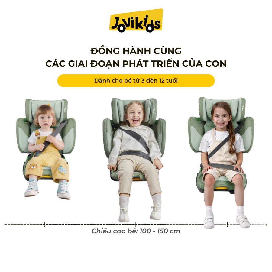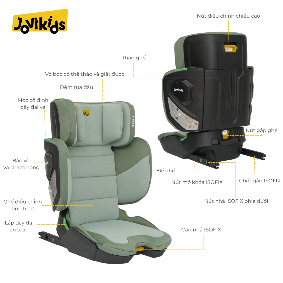 Jovikids Rober (Green) – Ghế ô tô trẻ em R129 cho bé từ 3 tuổi đến 12 tuổi