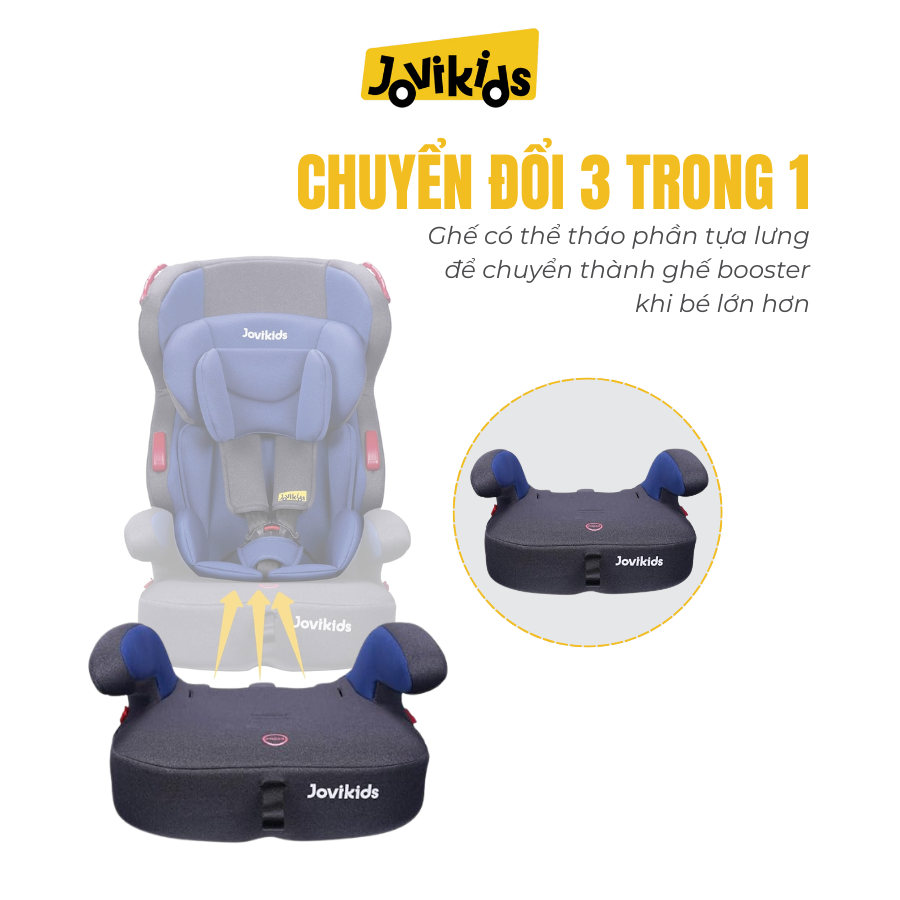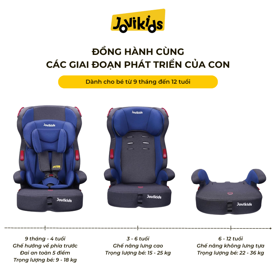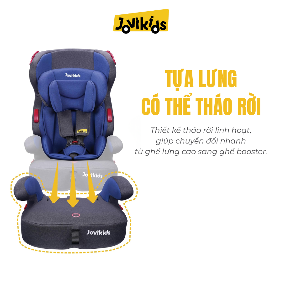 Jovikids Tammy R44 là mẫu ghế ô tô an toàn dành cho bé từ 9 tháng đến 12 tuổi (9 – 36kg), thiết kế 2-trong-1 vừa làm ghế lưng cao vừa chuyển thành booster khi bé lớn. Sản phẩm mang đến sự an toàn, thoải mái và tiện lợi cho mọi hành trình, phù hợp cho gia đình thường xuyên di chuyển bằng ô tô.
