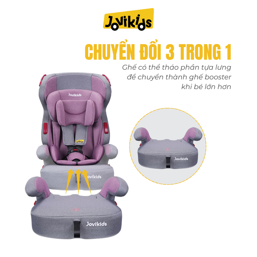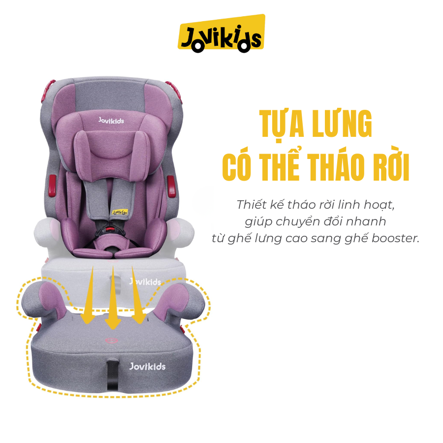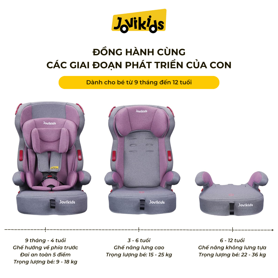 Jovikids Tammy R44 là mẫu ghế ô tô an toàn dành cho bé từ 9 tháng đến 12 tuổi (9 – 36kg), thiết kế 2-trong-1 vừa làm ghế lưng cao vừa chuyển thành booster khi bé lớn. Sản phẩm mang đến sự an toàn, thoải mái và tiện lợi cho mọi hành trình, phù hợp cho gia đình thường xuyên di chuyển bằng ô tô.