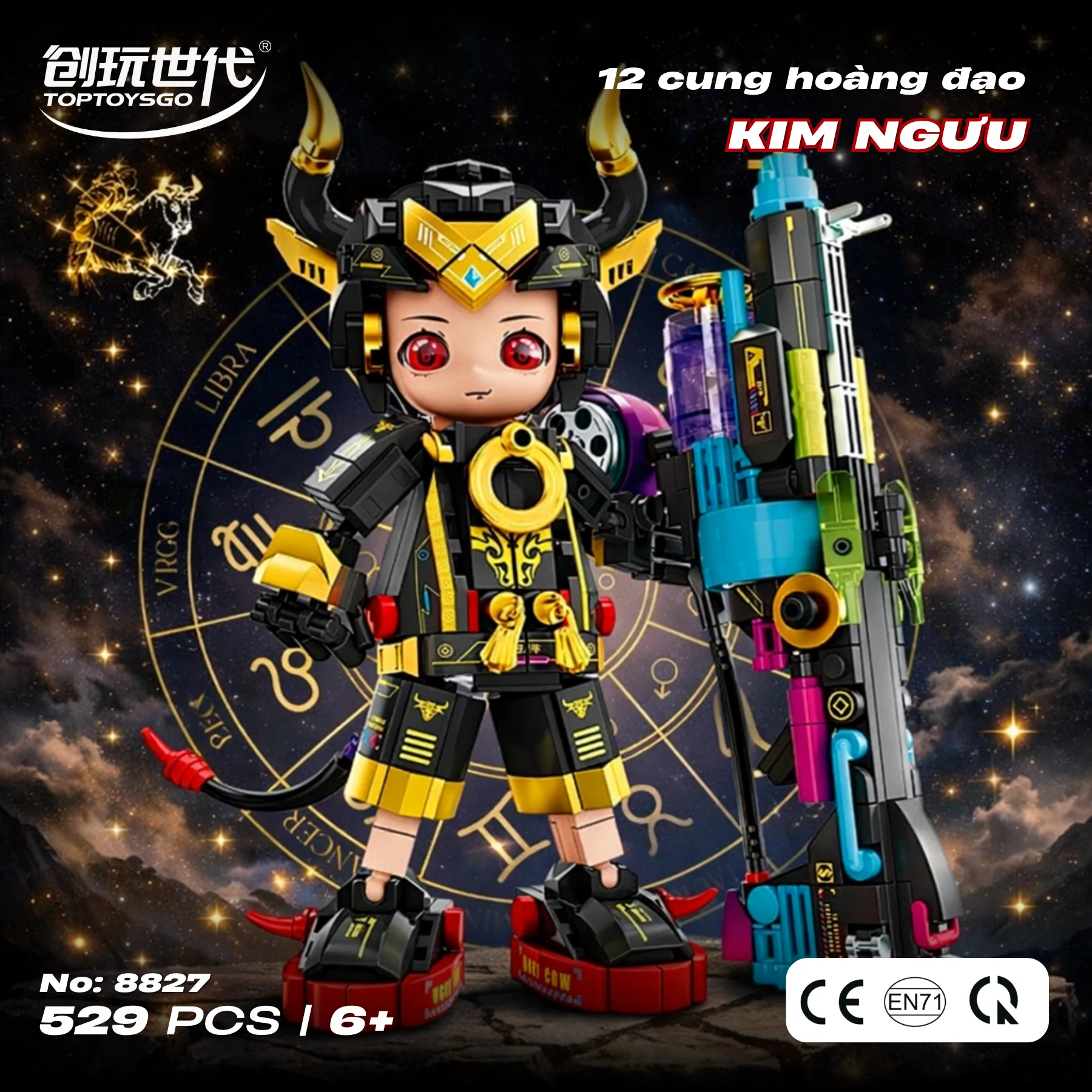 Đồ chơi lắp ráp Kim Ngưu cơ giáp Zodiac NO.8827 phù hợp cho bé từ 6 tuổi trở lên. Mô hình lấy cảm hứng từ cung hoàng đạo Kim Ngưu – biểu tượng của sức mạnh, sự bền bỉ và kiên định – kết hợp phong cách chiến binh công nghệ tạo nên nhân vật mạnh mẽ nhưng vẫn đáng yêu, thích hợp để bé chơi sáng tạo hoặc trưng bày bàn học.
