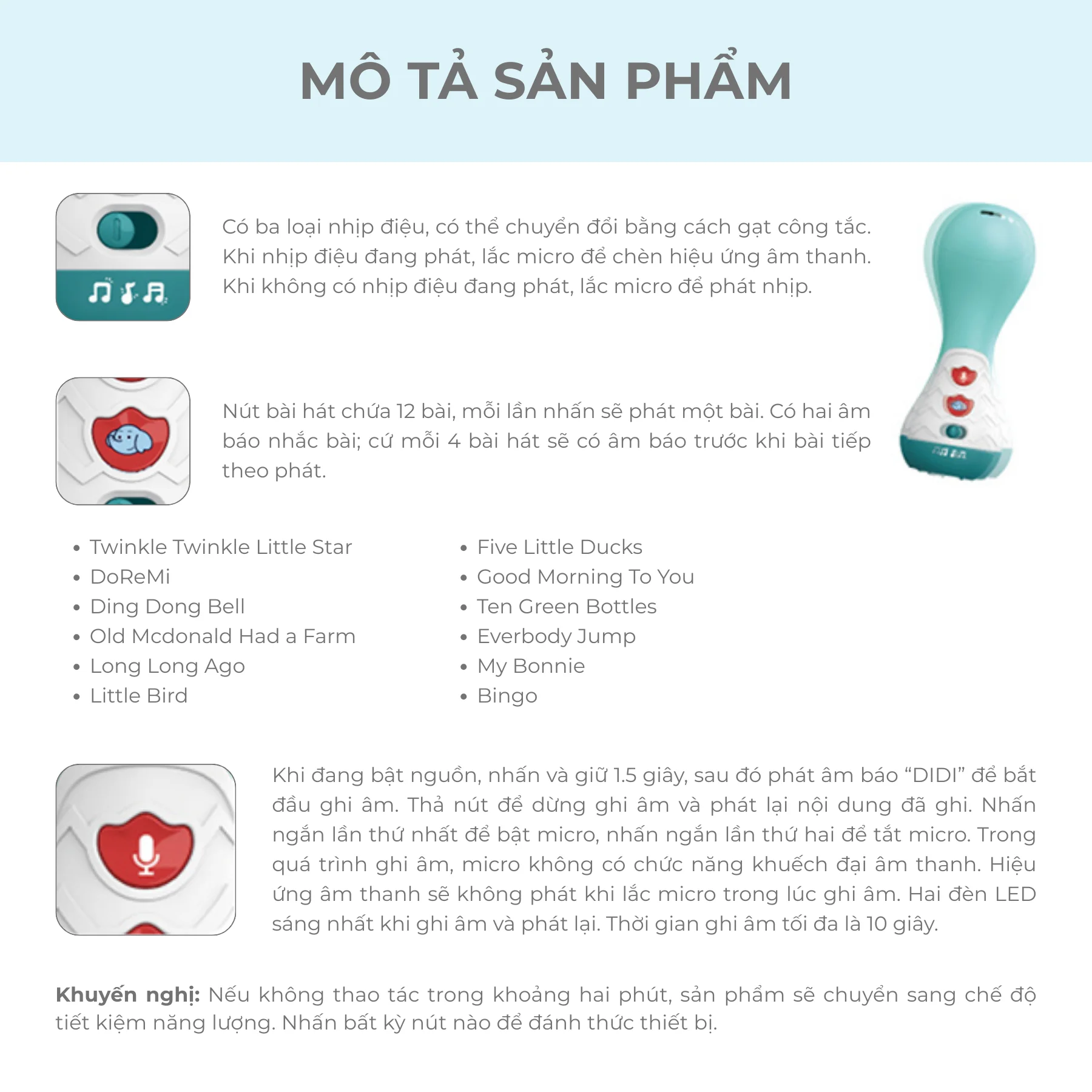 Thiết bị được trang bị 3 loại nhịp điệu khác nhau. Bé có thể chuyển đổi nhịp bằng công tắc để tạo hiệu ứng âm thanh vui nhộn khi hát.
