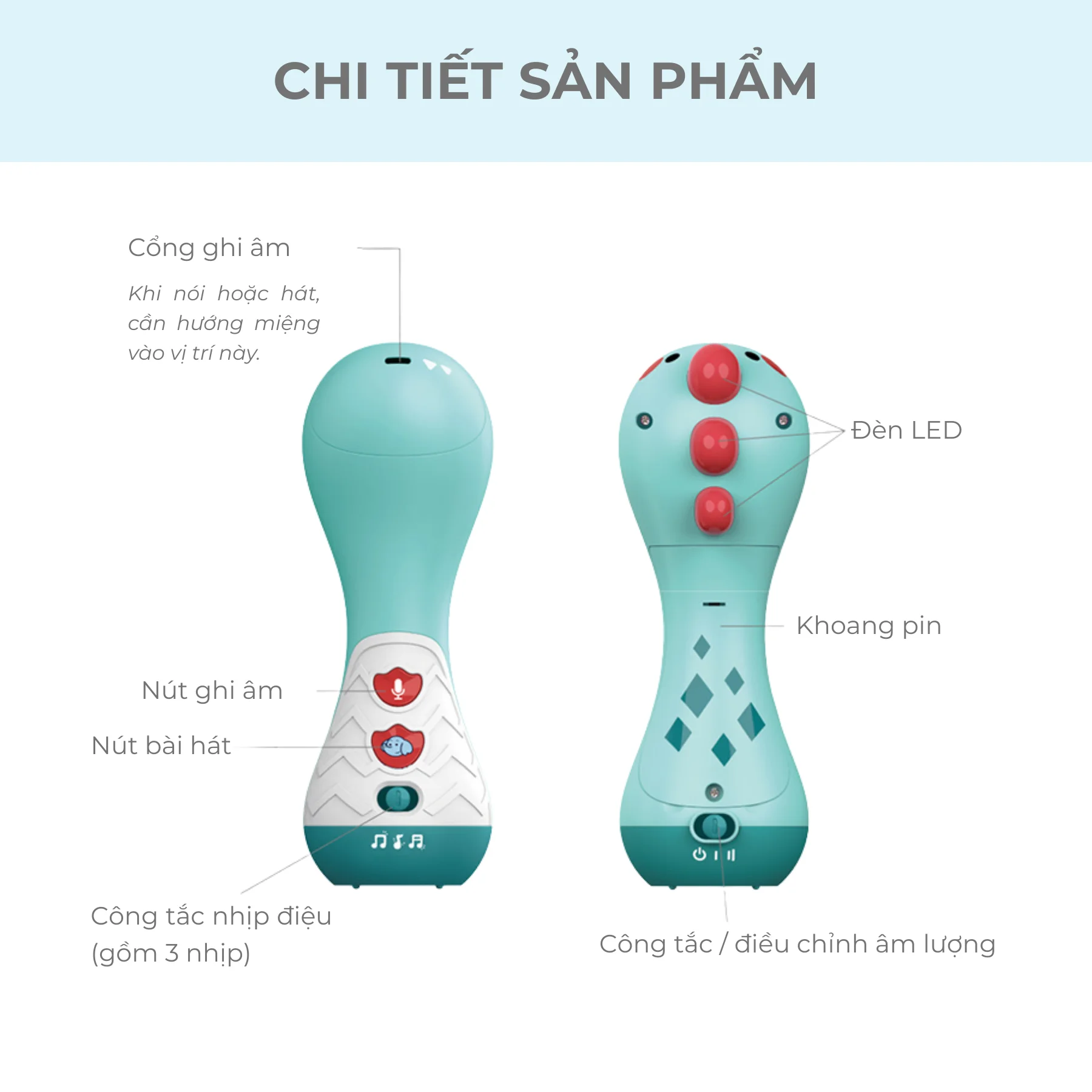 Chiếc micro nhỏ gọn cho phép bé hát, ghi âm và phát lại giọng nói của mình, mang đến trải nghiệm giống như một buổi biểu diễn mini ngay tại nhà.