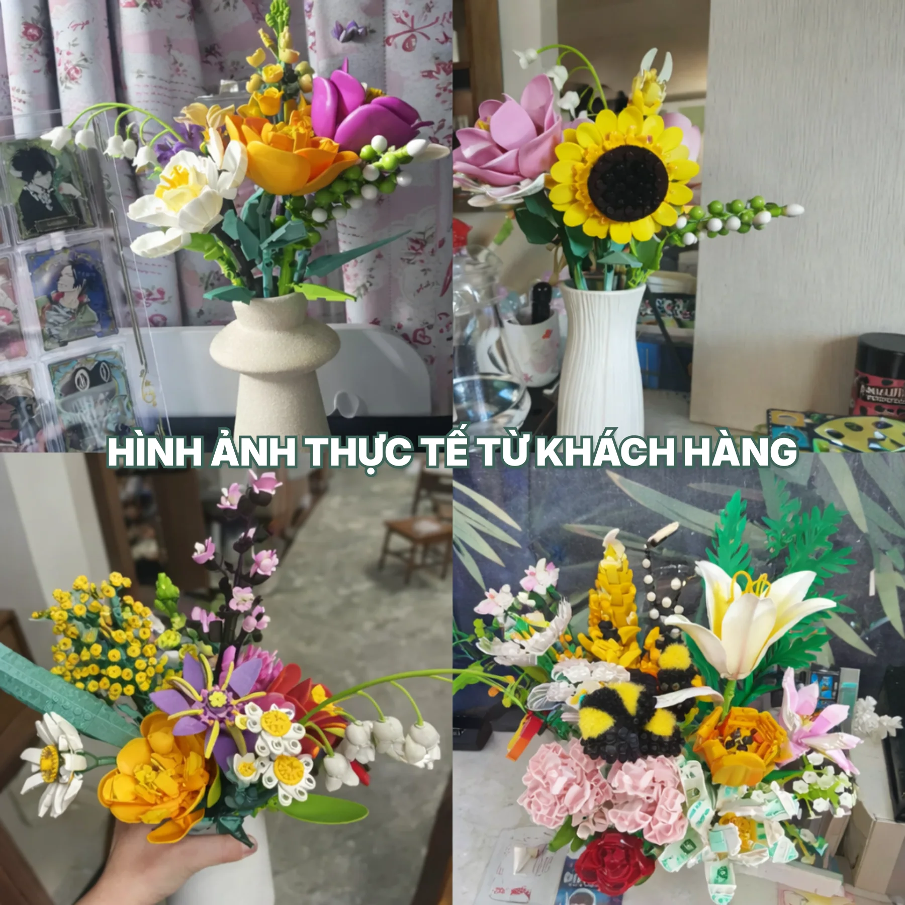 Các mảnh ghép được thiết kế chắc chắn, khớp nối gọn gàng, bề mặt mịn và an toàn, mang lại trải nghiệm lắp ráp liền mạch và dễ chịu. Phần thân hoa có thể điều chỉnh góc độ linh hoạt, giúp người chơi dễ dàng sáng tạo dáng hoa theo sở thích cá nhân hoặc phù hợp với nhiều kiểu bình trang trí khác nhau.