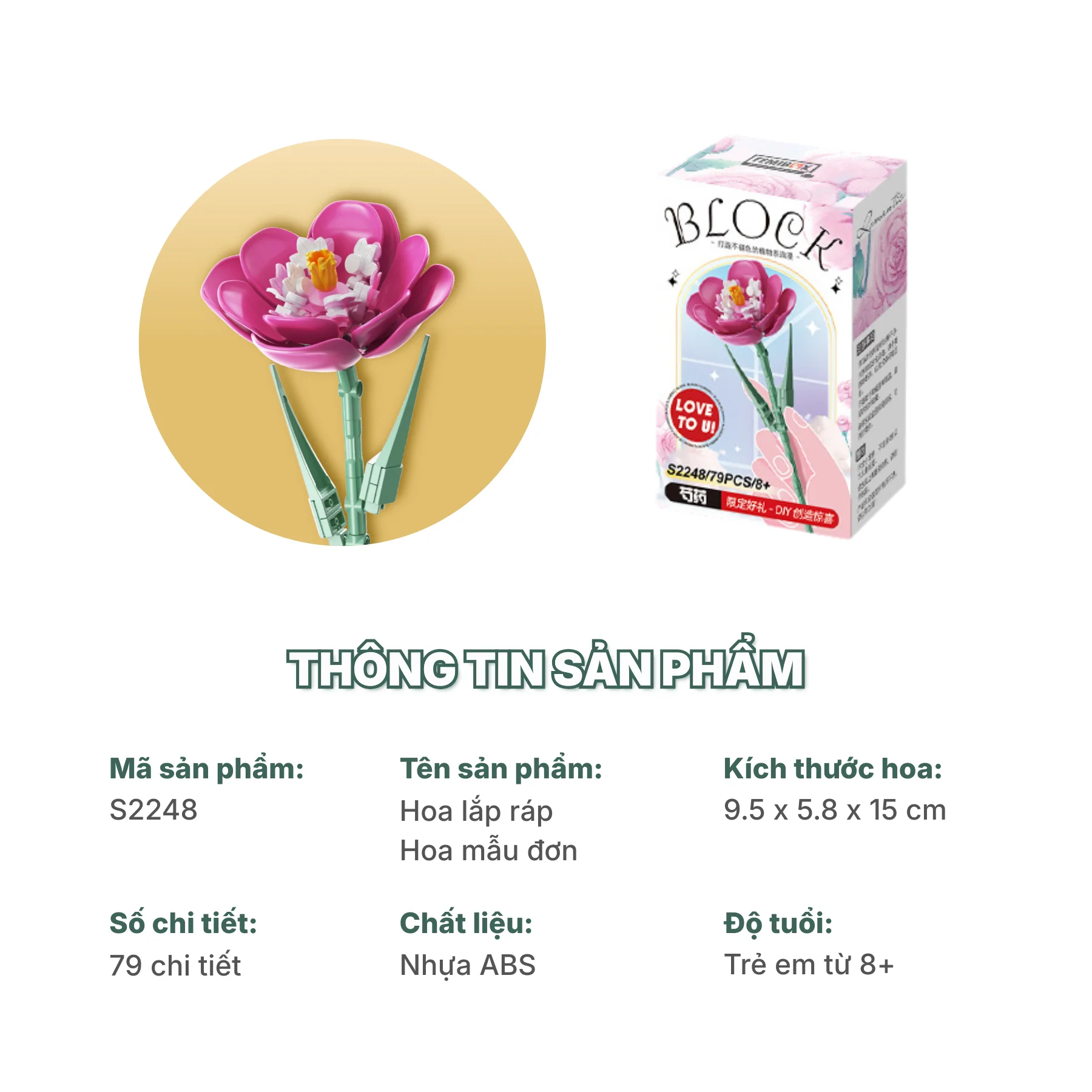 Đồ chơi lắp ráp Hoa Mẫu Đơn S2248 là lựa chọn phù hợp cho người yêu thích hoa trang trí và mô hình lắp ráp nghệ thuật, vừa mang trải nghiệm thư giãn vừa giúp không gian thêm phần tinh tế.