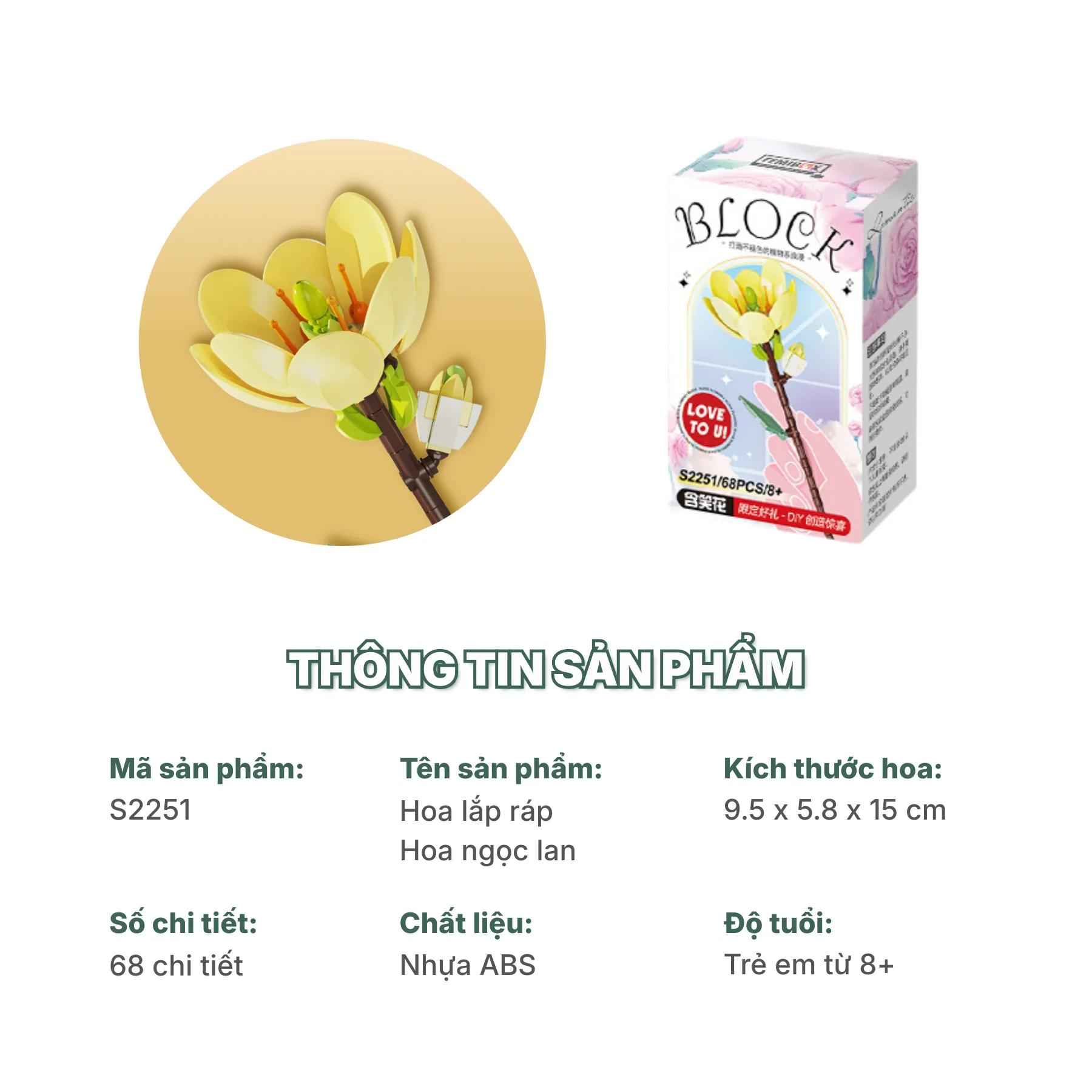 + Tên sản phẩm: Mô hình lắp ráp Hoa Ngọc Lan
