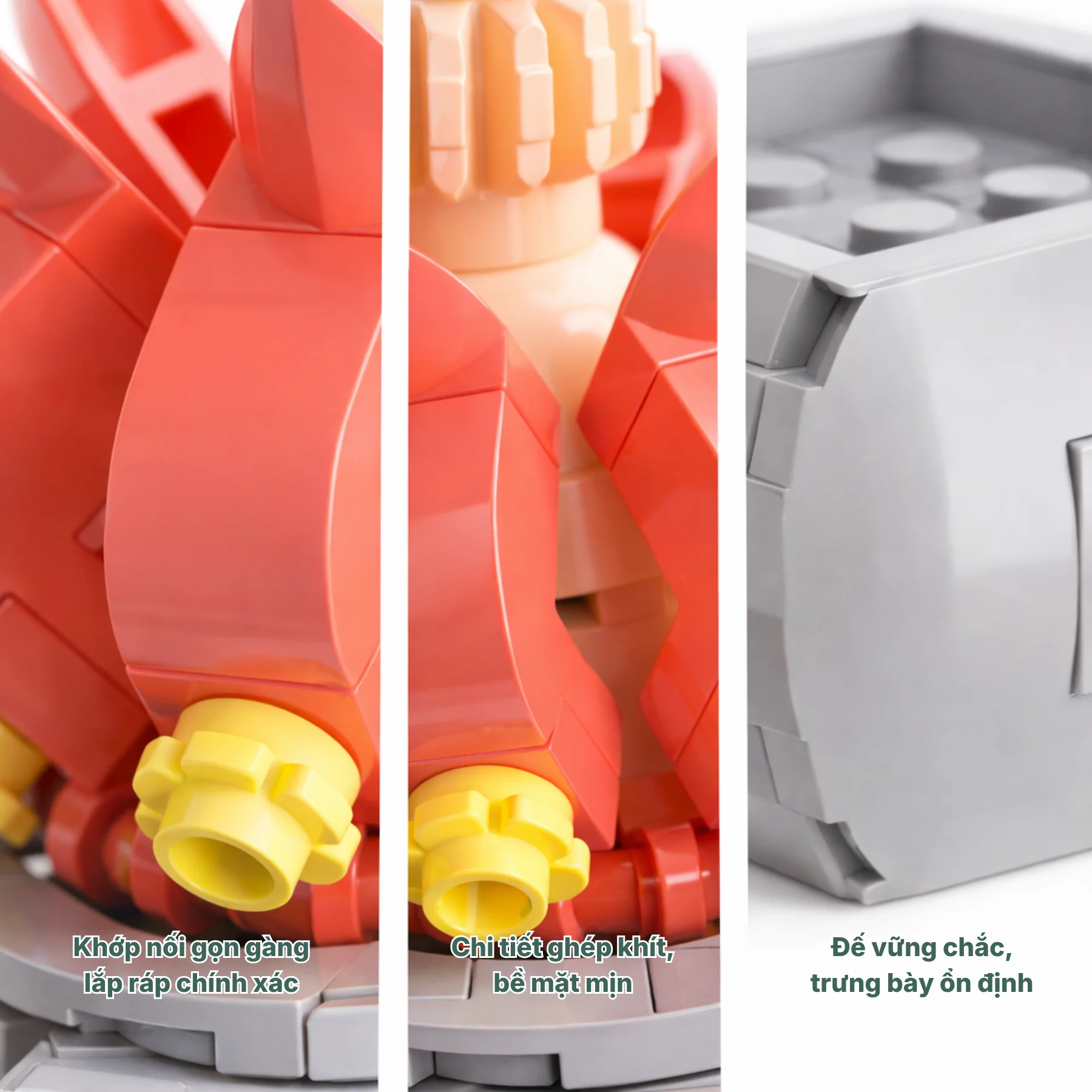 Trong quá trình lắp ráp, người chơi có thể rèn luyện khả năng quan sát, tư duy logic và sự khéo léo, đồng thời cảm nhận được tính cân đối và nhịp điệu của từng chi tiết. Các mảnh ghép được hoàn thiện tốt, khớp nối chắc chắn, bề mặt mịn và màu sắc tươi sáng.