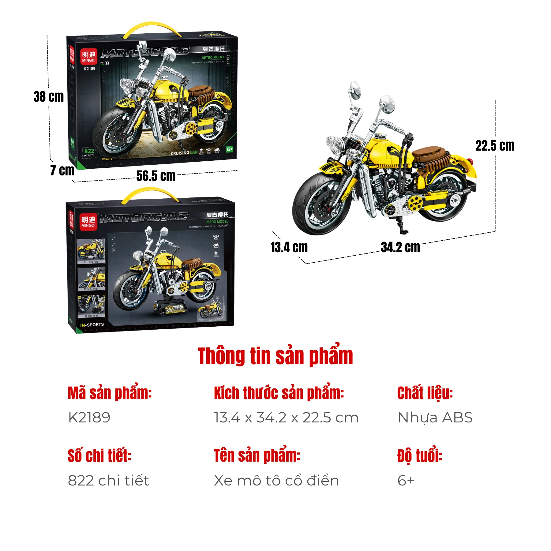 Bộ đồ chơi lắp ráp xe mô tô Retro MINGDI K2189 là sự kết hợp giữa mô hình kỹ thuật và phong cách mô tô cổ điển. Sau khi hoàn thiện, chiếc mô hình không chỉ mang lại trải nghiệm lắp ráp thú vị mà còn trở thành một món đồ trưng bày ấn tượng dành cho những người yêu thích mô tô và mô hình cơ khí.