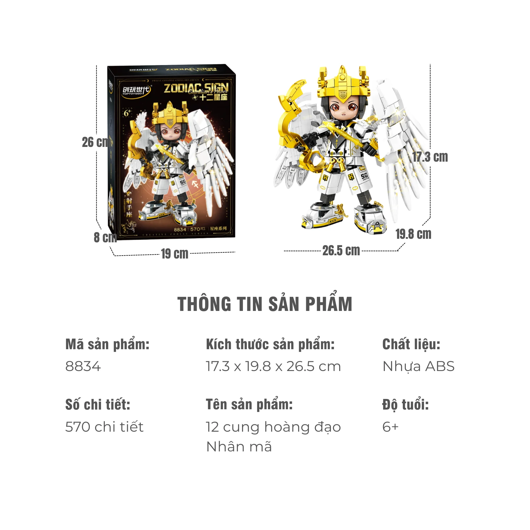 Đồ chơi lắp ráp Nhân Mã cơ giáp Zodiac NO.8834 phù hợp cho bé từ 6 tuổi trở lên. Nhân vật lấy cảm hứng từ cung Nhân Mã – biểu tượng của tự do và lòng dũng cảm – kết hợp phong cách thiên thần chiến binh tạo nên mô hình vừa thanh lịch vừa mạnh mẽ, thích hợp để chơi sáng tạo hoặc trưng bày góc học tập.