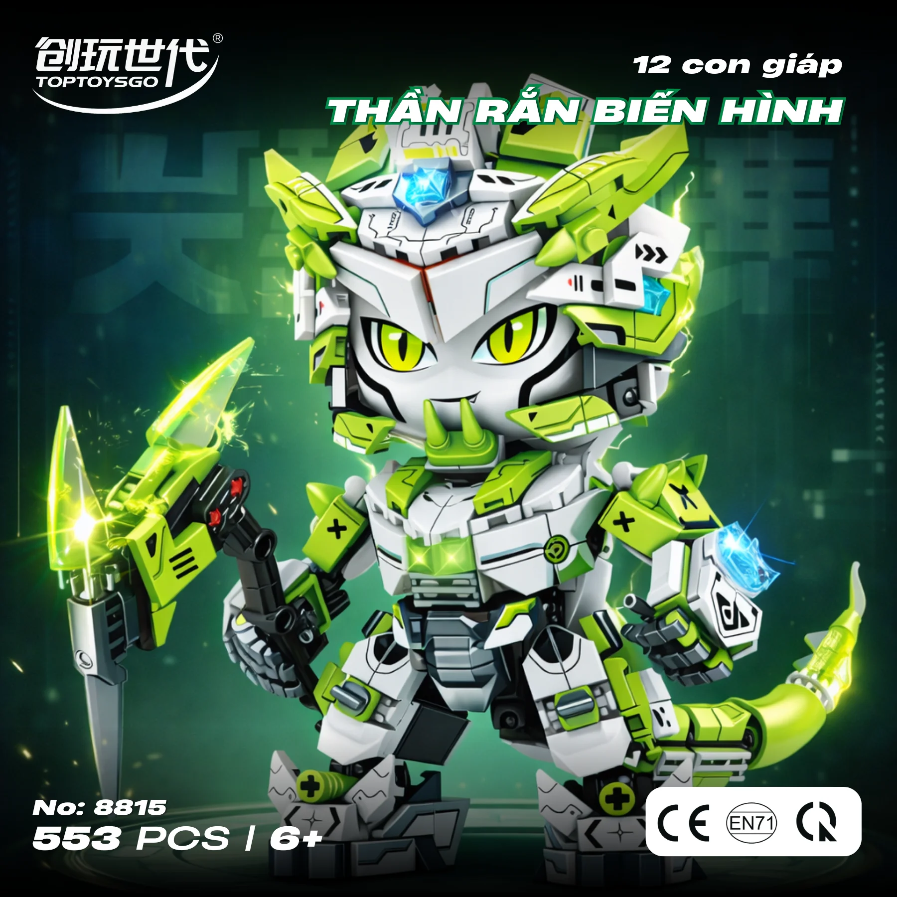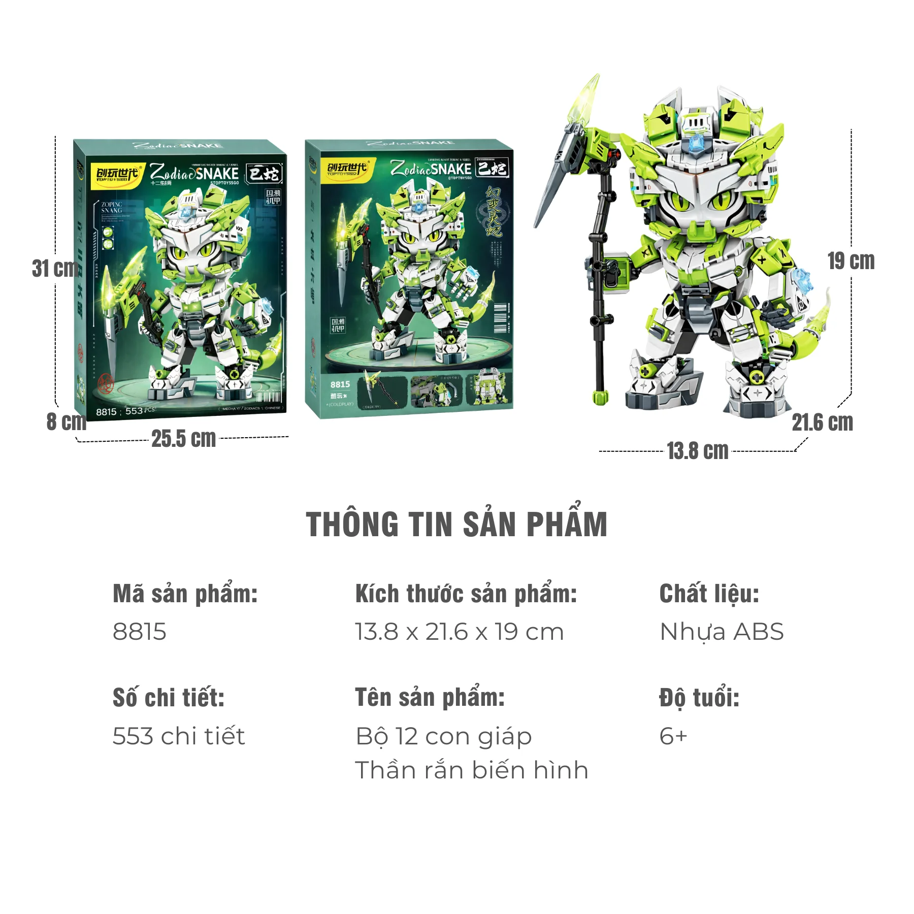 Đồ chơi lắp ráp Rắn cơ giáp Zodiac NO.8815 gồm 553 mảnh ghép, phù hợp cho bé từ 6 tuổi trở lên. Mô hình lấy cảm hứng từ linh vật rắn kết hợp phong cách cơ khí hiện đại, tạo nên nhân vật vừa bí ẩn vừa mạnh mẽ, thích hợp để chơi sáng tạo và trưng bày trên bàn học.