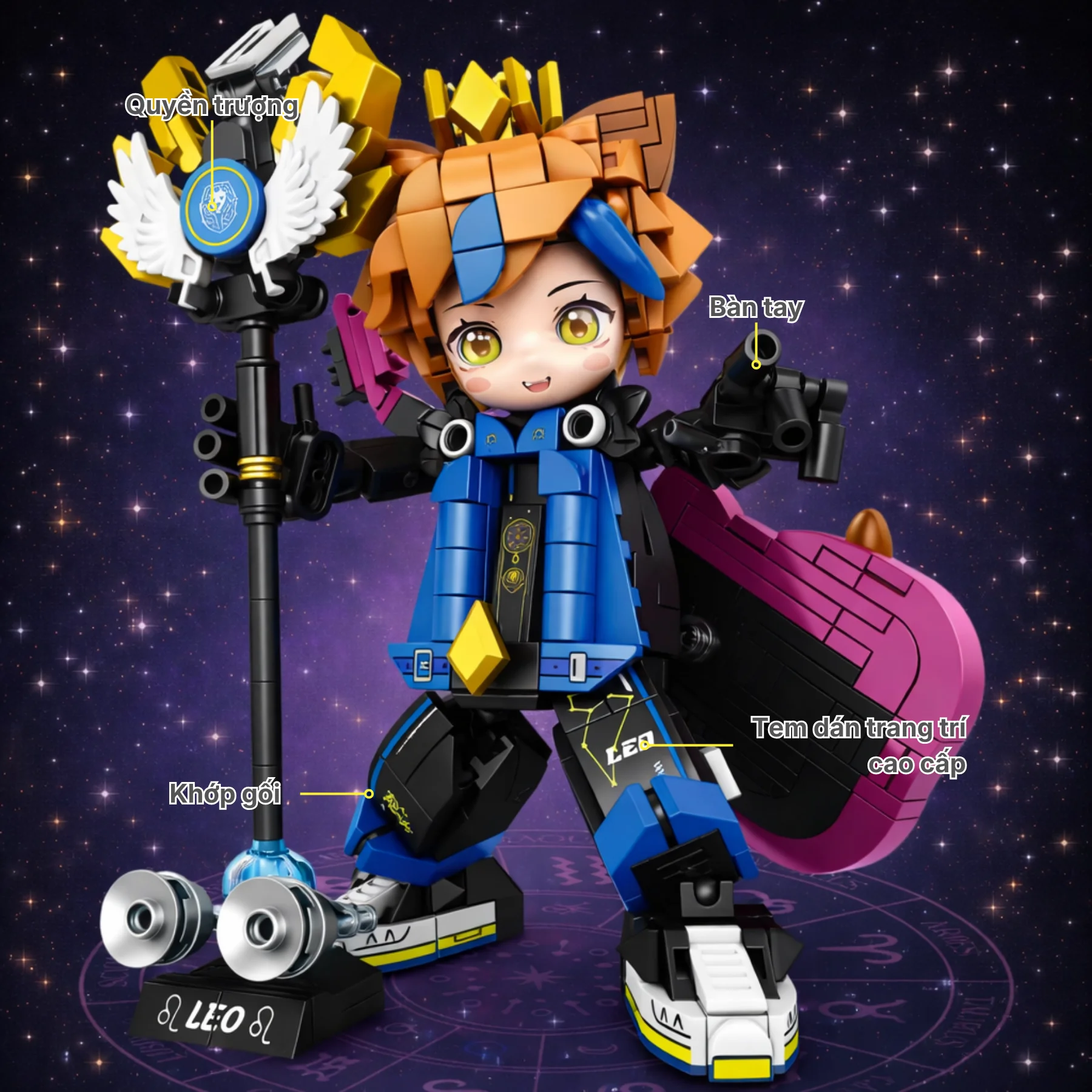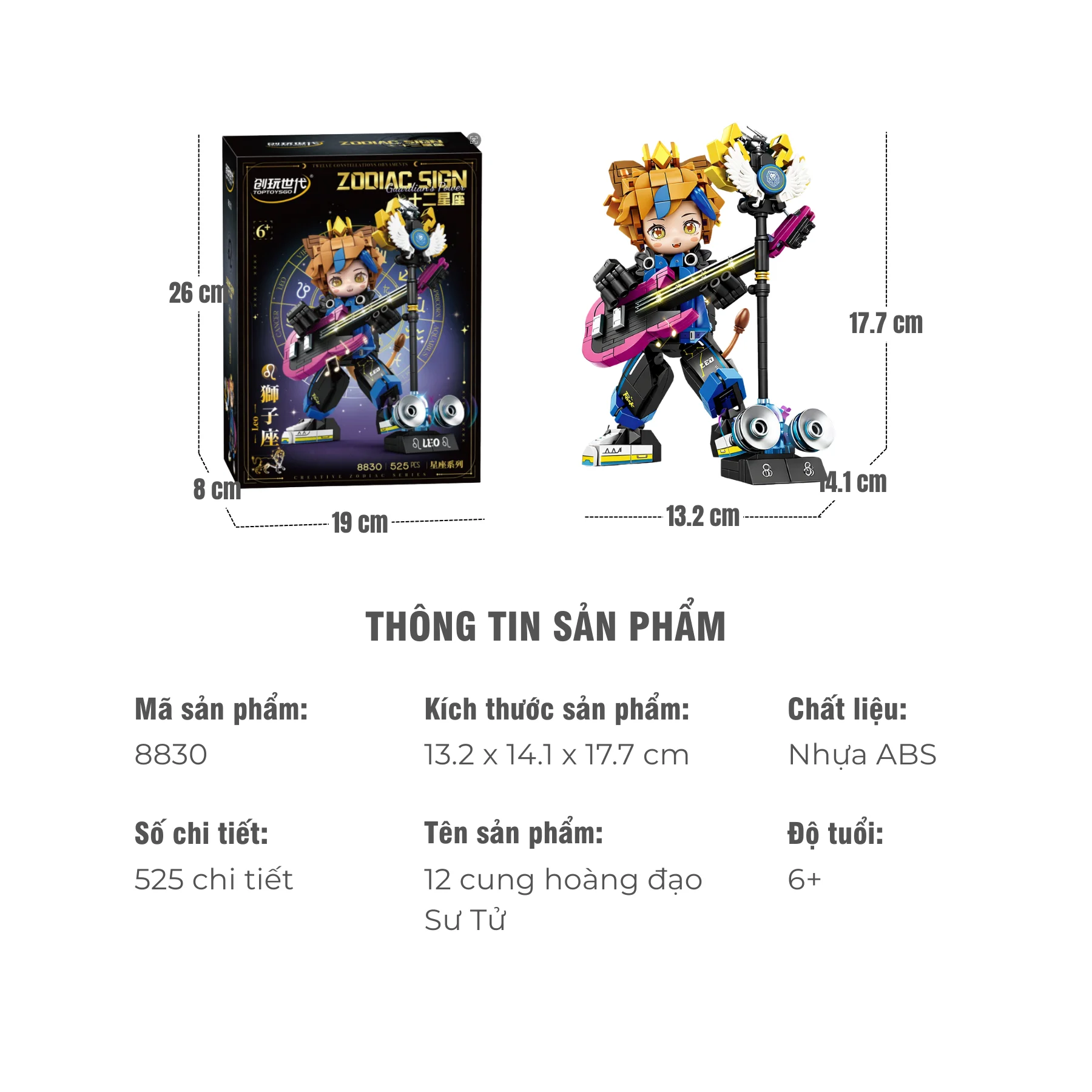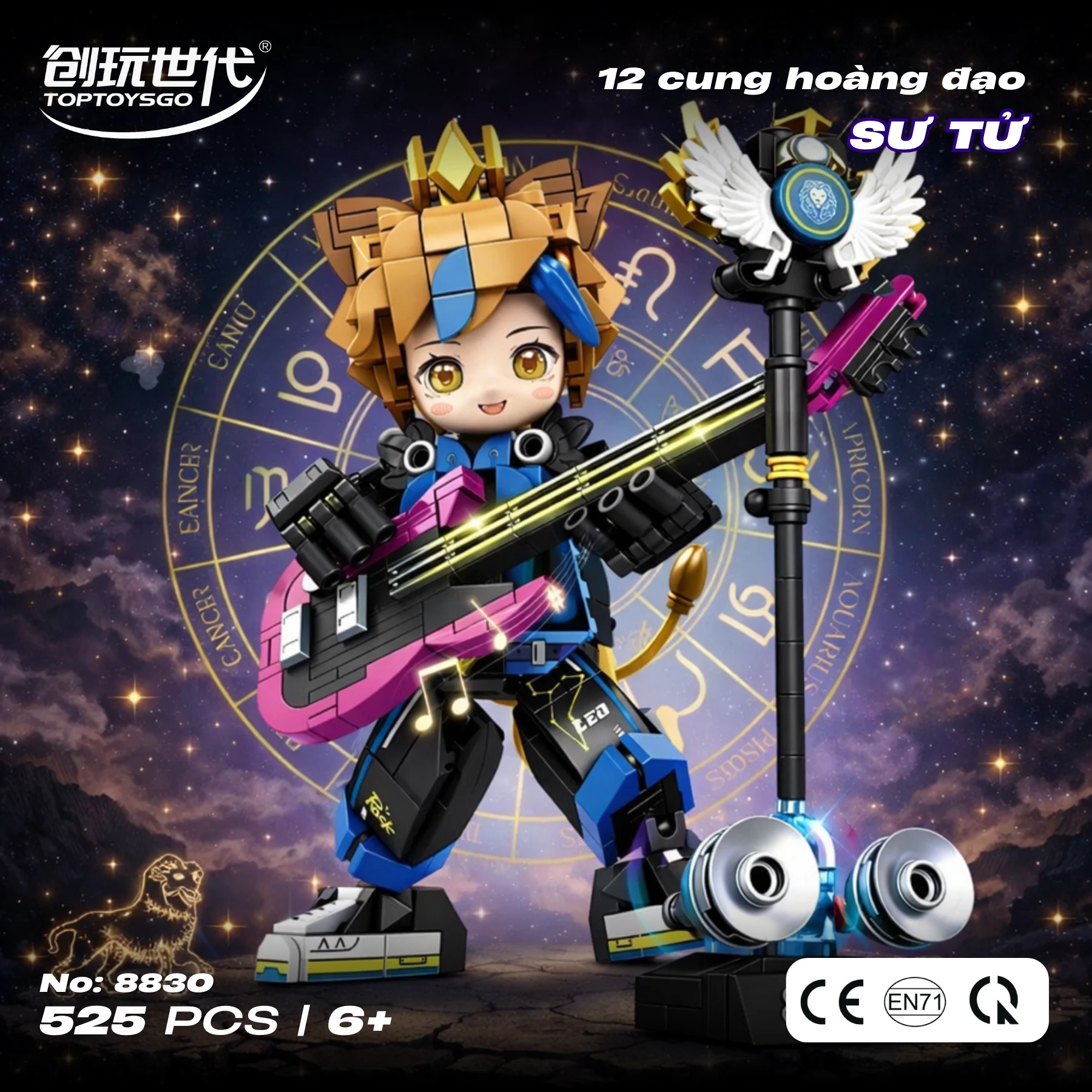 Đồ chơi lắp ráp Sư Tử cơ giáp Zodiac NO.8830 dành cho bé từ 6 tuổi trở lên. Lấy cảm hứng từ cung Sư Tử – biểu tượng của sự tự tin, nổi bật và tinh thần thủ lĩnh – nhân vật được thiết kế với mái tóc bờm sư tử đặc trưng cùng phong cách nghệ sĩ năng động, tạo cảm giác vừa mạnh mẽ vừa cá tính khi trưng bày trên bàn học.