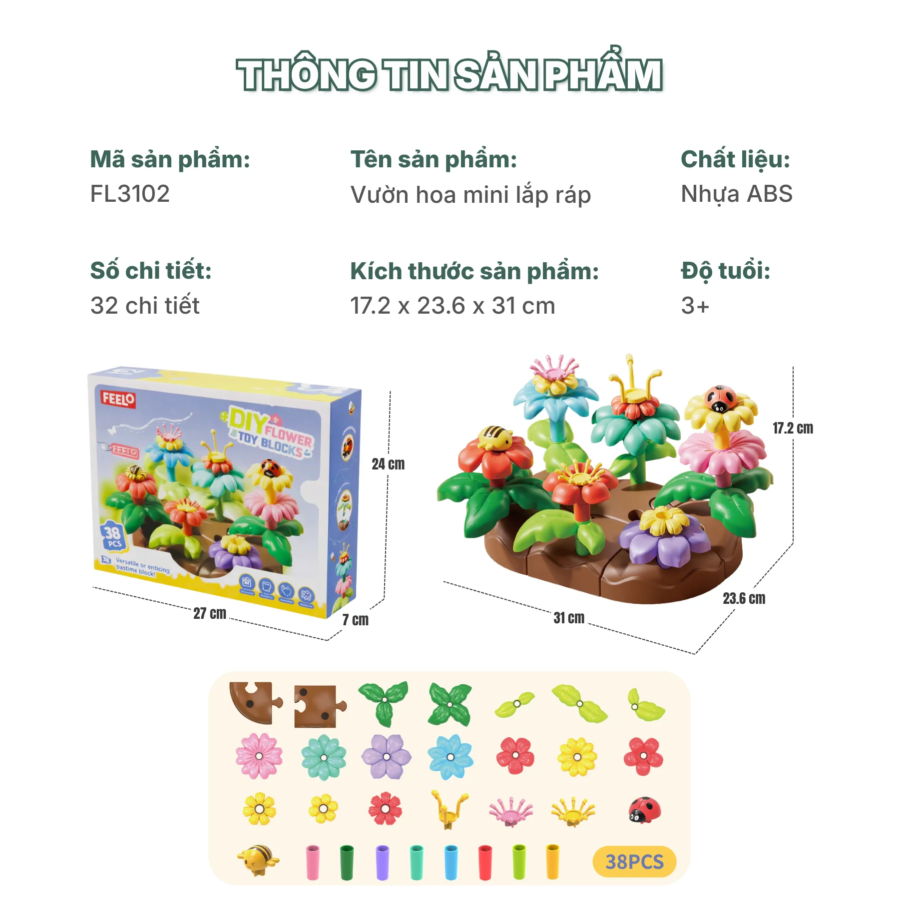 Đồ chơi lắp ráp vườn hoa mini FEELO FL3102 mang đến cho bé những giờ phút vui chơi thú vị đồng thời giúp phát triển nhiều kỹ năng quan trọng như tư duy sáng tạo, khả năng quan sát và vận động tay.