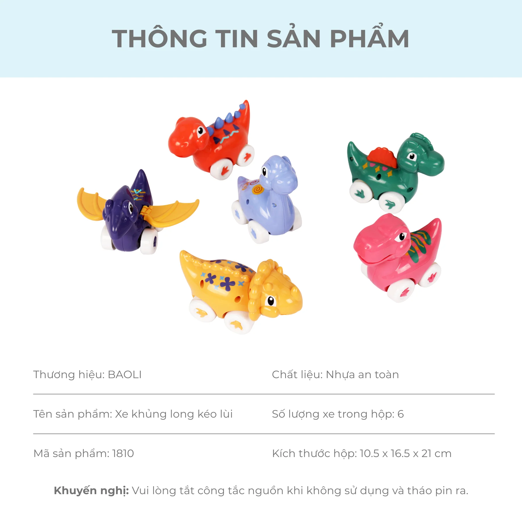 Xe khủng long kéo lùi Dreaming Party BAOLI 1810 là món đồ chơi đơn giản nhưng mang lại nhiều niềm vui cho trẻ nhỏ. Với cơ chế kéo lùi dễ chơi và bộ sưu tập khủng long nhiều màu sắc, sản phẩm giúp bé phát triển vận động, khám phá chuyển động và tạo nên những câu chuyện tưởng tượng thú vị trong quá trình chơi.