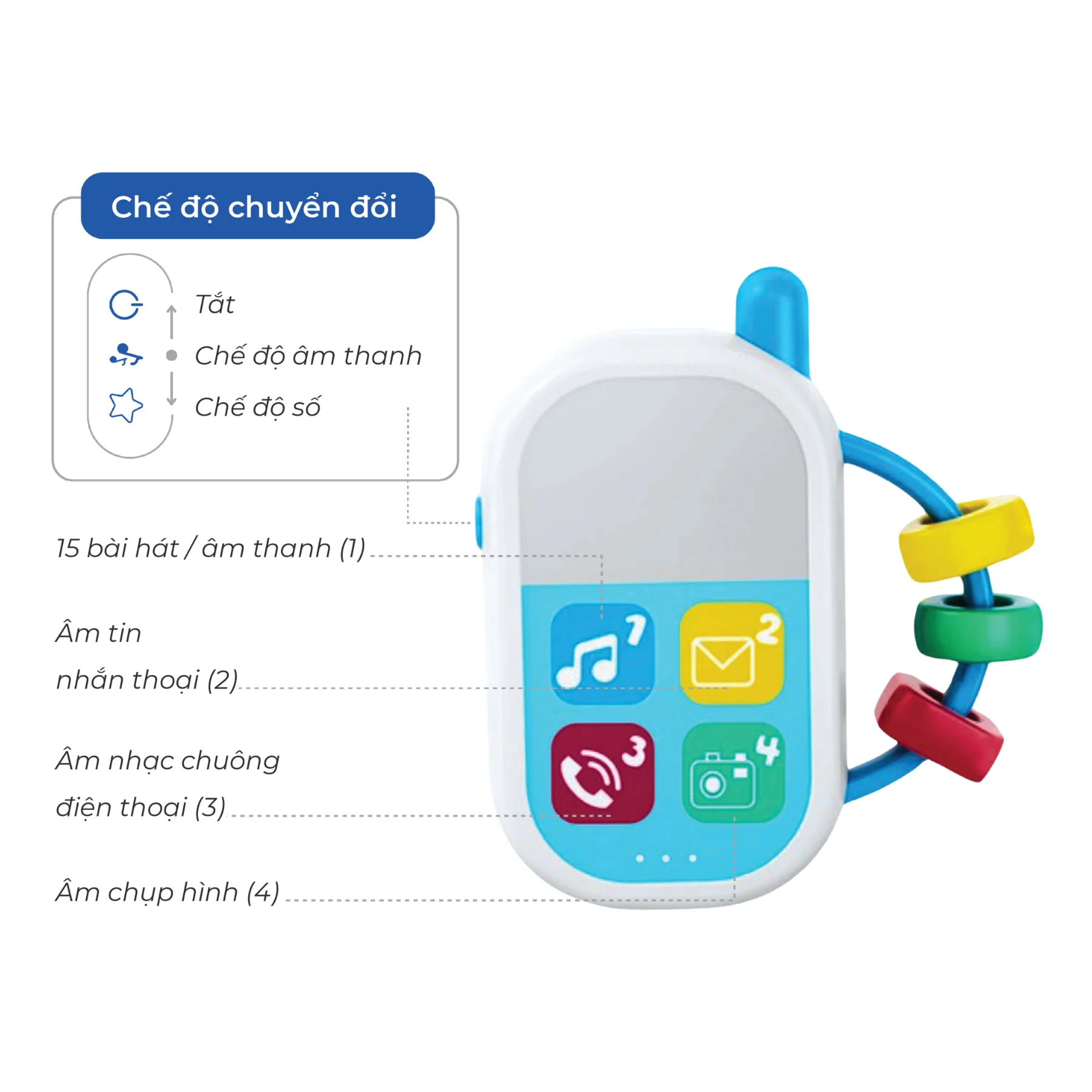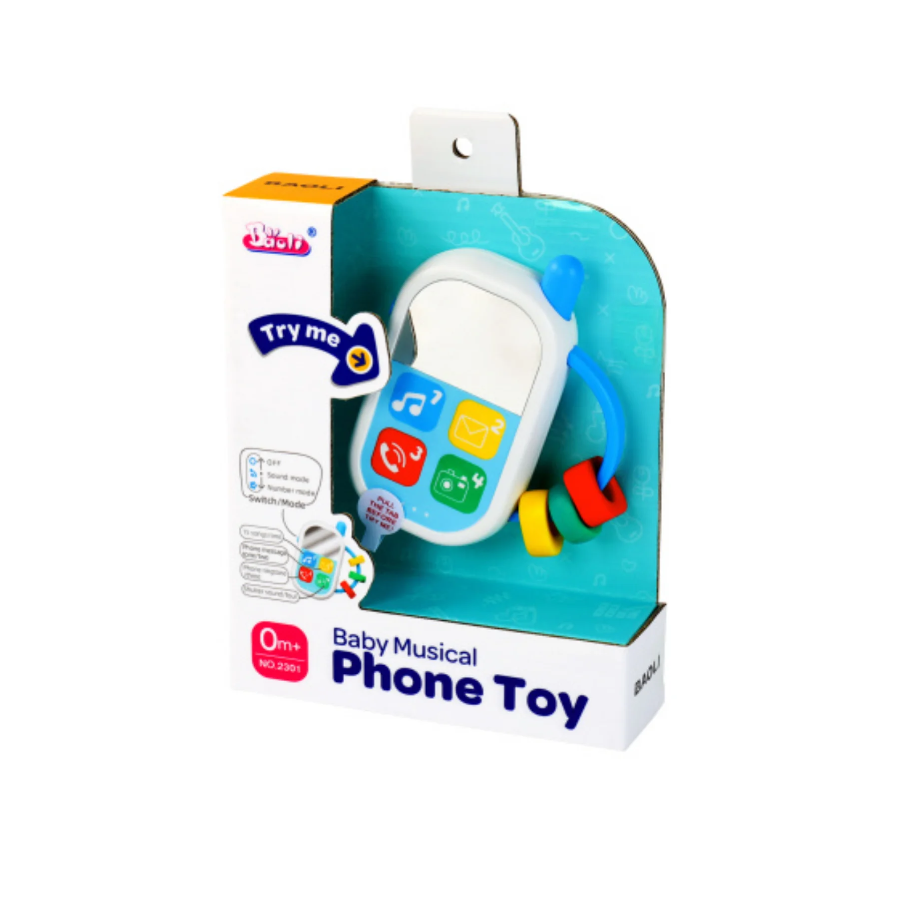 Điện thoại xúc xắc âm nhạc BAOLI 2301C là món đồ chơi kích thích giác quan dành cho bé từ 0 tháng tuổi, mô phỏng smartphone với 4 nút bấm âm thanh sinh động, 15 bài nhạc vui tai, gương soi, vòng xúc xắc cầm nắm và thiết kế an toàn tuyệt đối cho trẻ sơ sinh. Giúp bé vừa lắc, vừa nghe, vừa chơi âm nhạc một cách tự nhiên.
