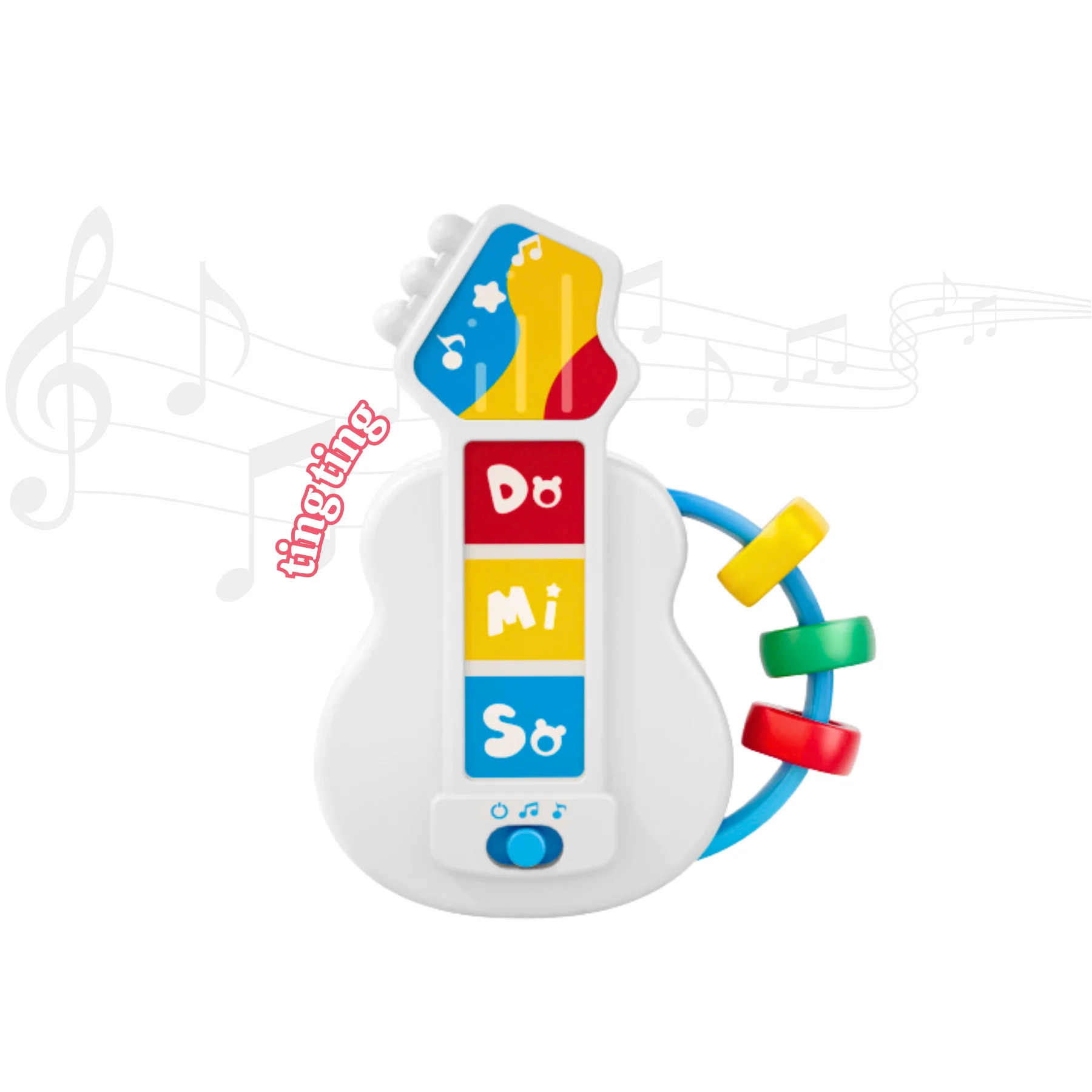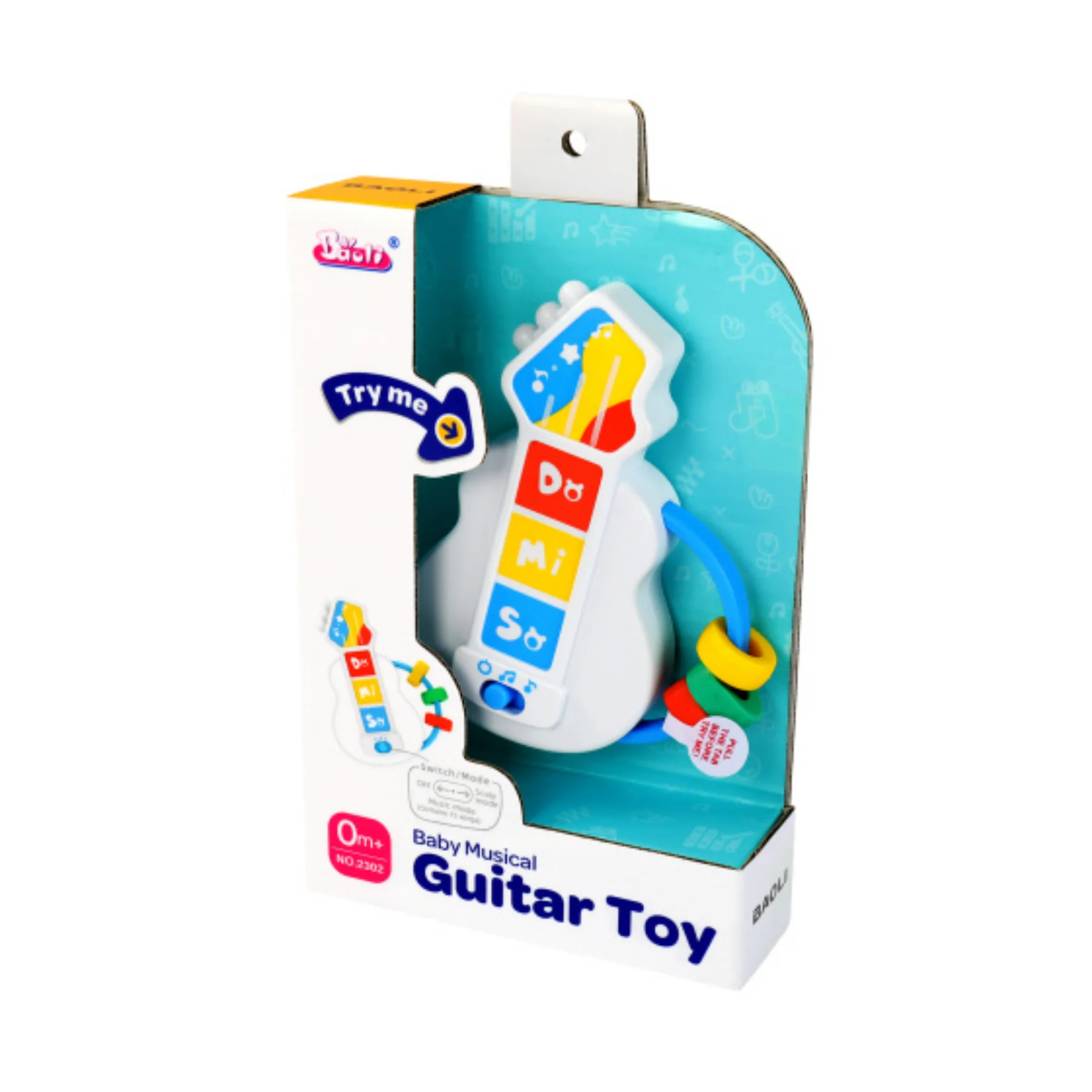 Xúc xắc đàn guitar âm nhạc BAOLI 2302C dành cho bé từ 0 tháng tuổi, thiết kế mô phỏng nhạc cụ với 3 phím Do – Mi – So, phát 45 bài hát/âm thanh sinh động, kèm vòng xúc xắc nhiều màu giúp bé vừa nghe nhạc, vừa lắc, vừa luyện kỹ năng cầm nắm an toàn. Màu sắc tươi sáng và thiết kế bo tròn phù hợp cho bé sơ sinh khám phá âm nhạc từ sớm.